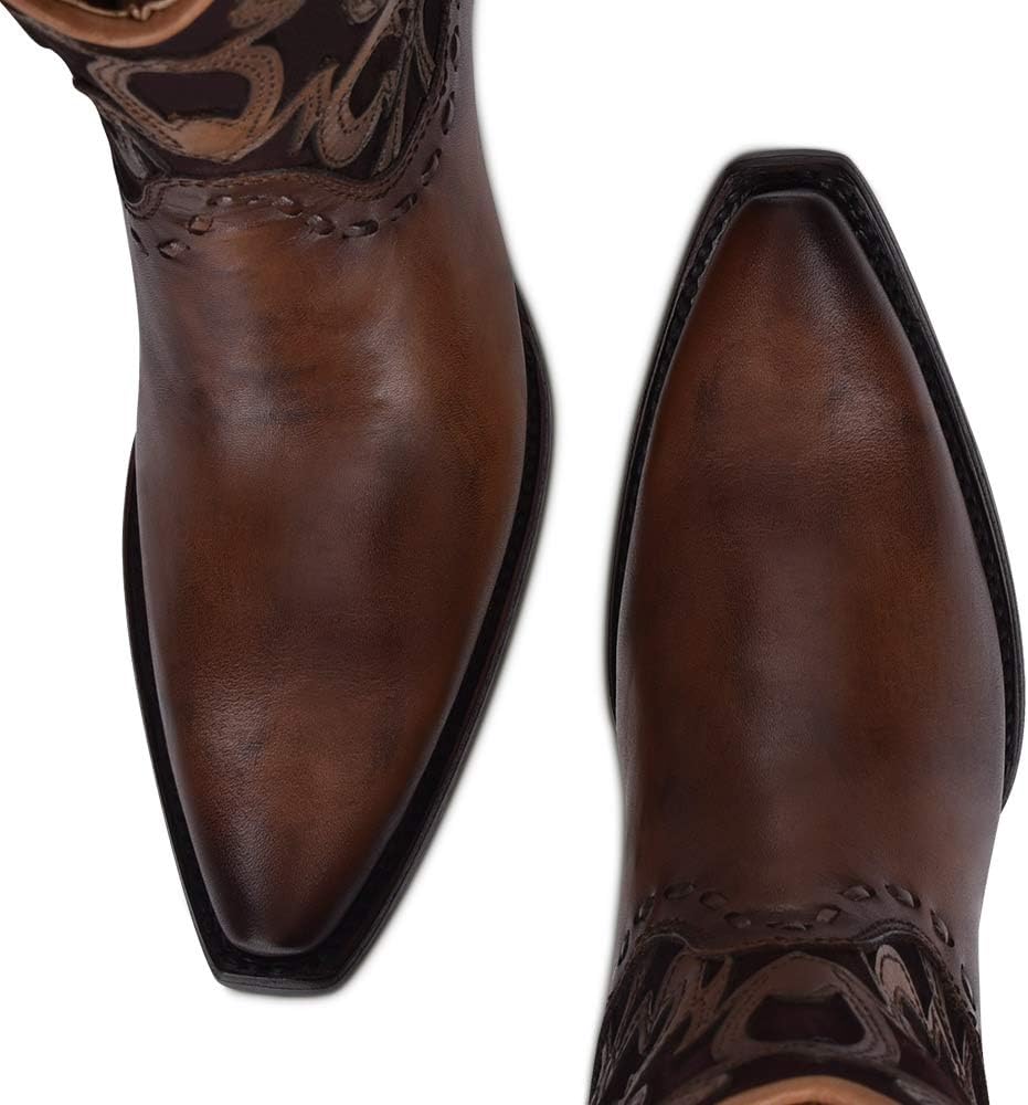 حذاء Cuadra النسائي الغربي الأنيق من الجلد الطبيعي مع سحاب بني