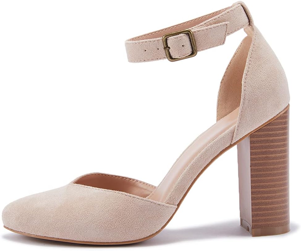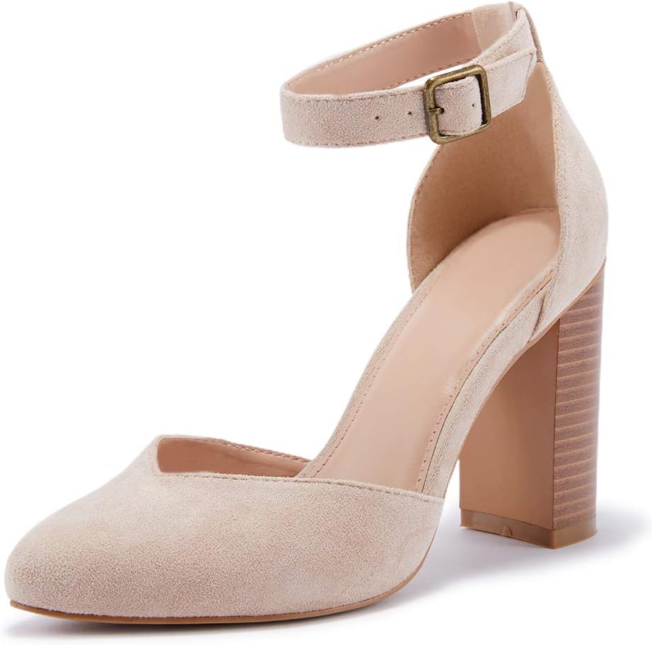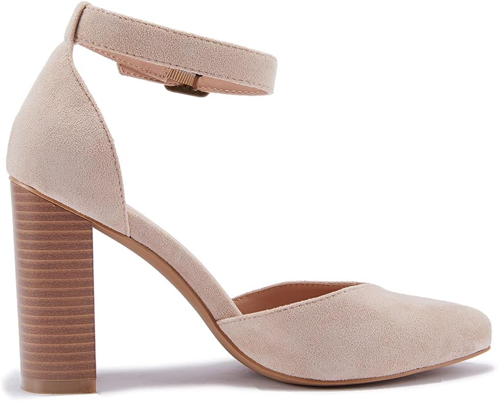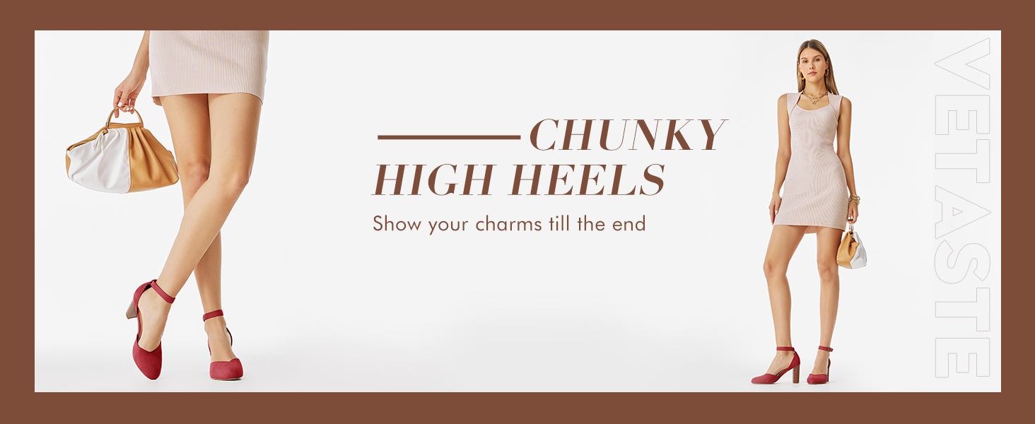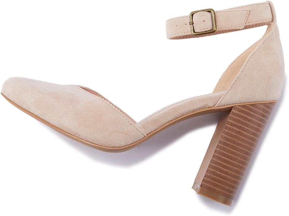 VETASTE حذاء نسائي بكعب عالٍ مكتنز ومقدمة مدببة حذاء كاجوال بحزام الكاحل ومقدمة مغلقة