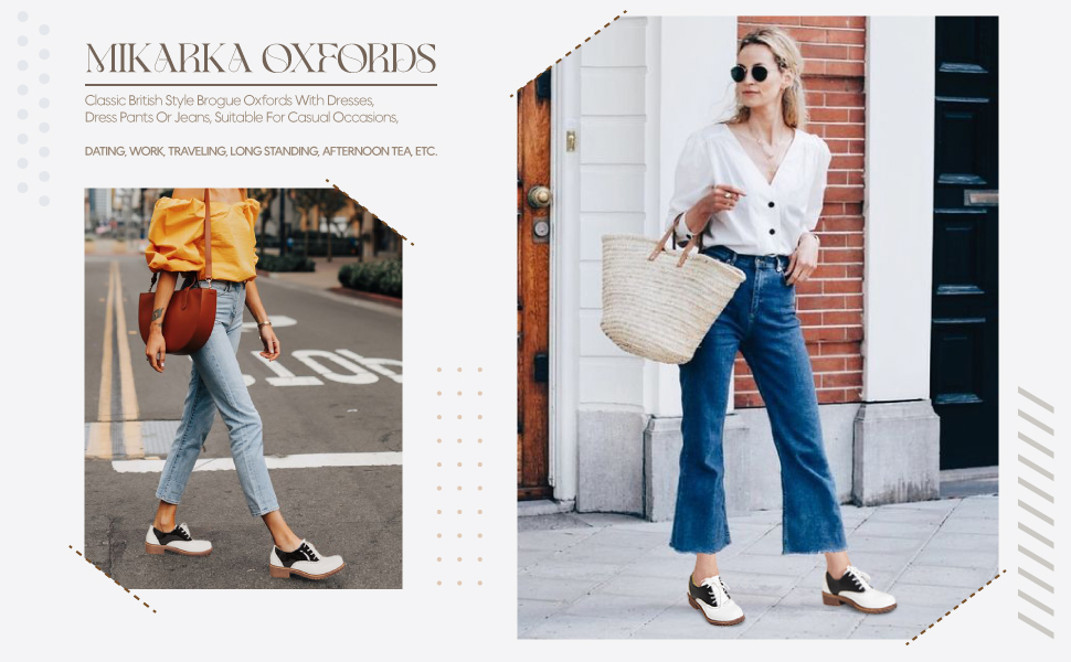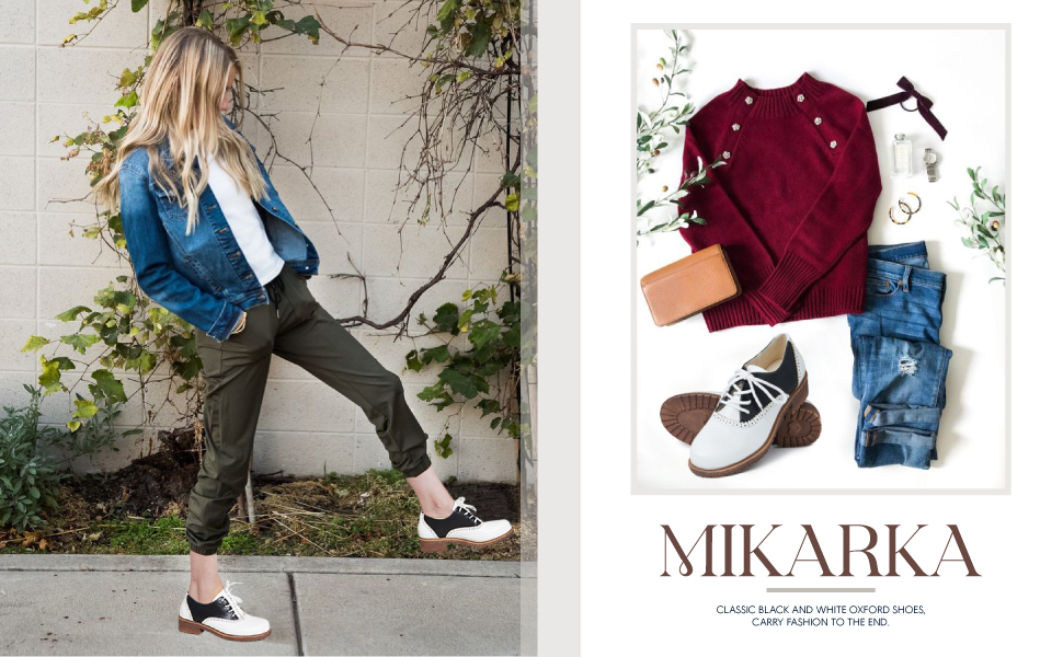 أحذية أكسفورد من mikarka للنساء بكعب منخفض مكتنز وأطراف أجنحة مثقوبة وأحذية بكعب عالي