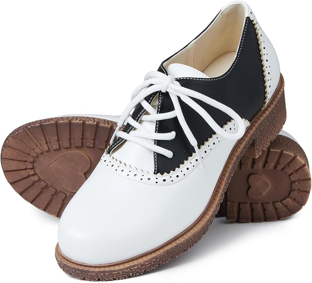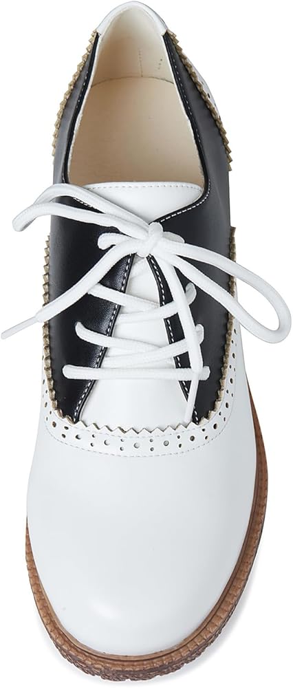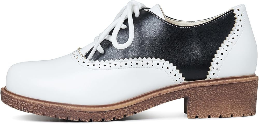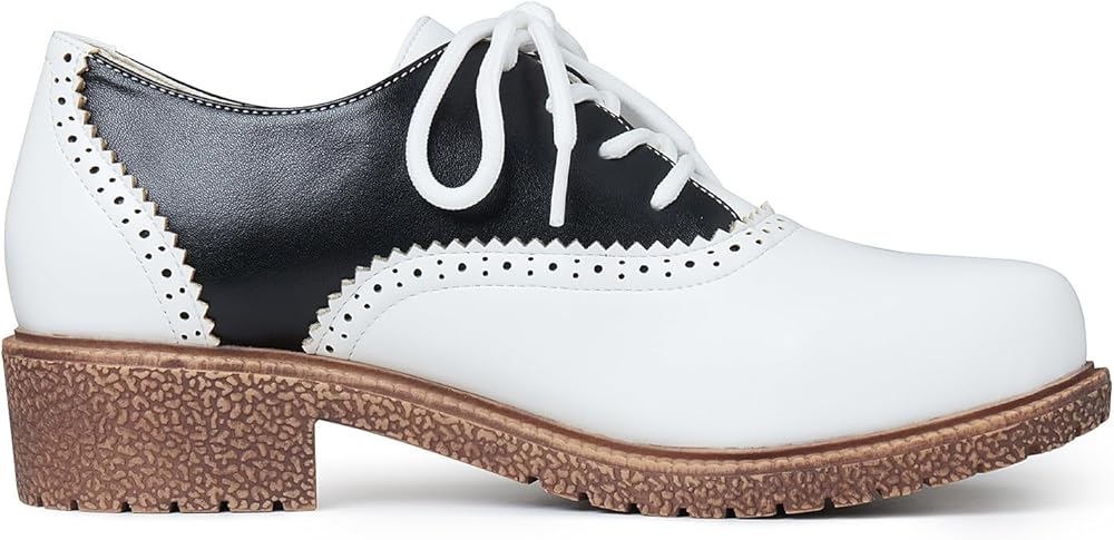 • مظهر فريد من نوعه: من المؤكد أن تكون أحذية أوكسفورد الجلدية الاصطناعية العتيقة فريدة وأنيقة. تم تصميم أحذية السرج هذه بنعل داخلي ناعم من اللاتكس مغطى بالبولي يوريثان ونعل مطاطي بني، والجزء العلوي من طراز بروغ المثقوب العتيق يلفت الأنظار دائمًا ولكنه لا يصبح قديمًا أبدًا.