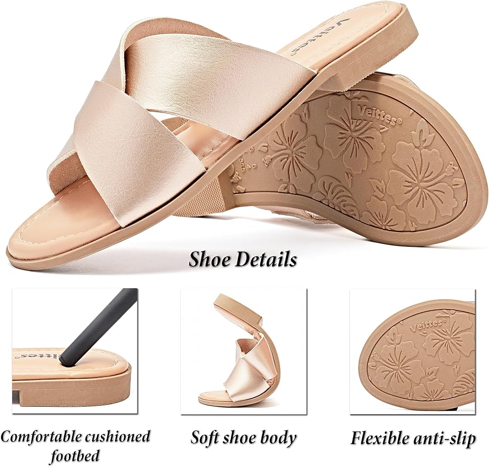 مواد عالية الجودة: هذه الصنادل المسطحة المفتوحة عند الأصابع مصنوعة من جلد عالي الجودة ومستقر مع بطانة مريحة. يمنح صندوق أصابع القدم ذو التصميم الواسع مساحة أكبر لأصابع القدم. سهل الارتداء والخلع.