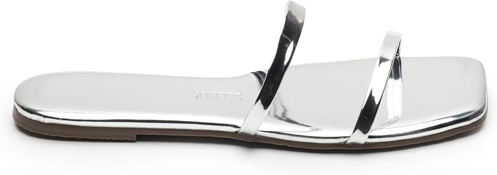 Standout with your flashy yet sophisticated style wearing the TKEES Square Toe Gemma Mirror Flats. The slip-on footwear features bovine leather upper, lining, and insole construction with toe-post strap. Open square toe silhouette. Bovine leather midsole. Rubber outsole. Made in Brazil.