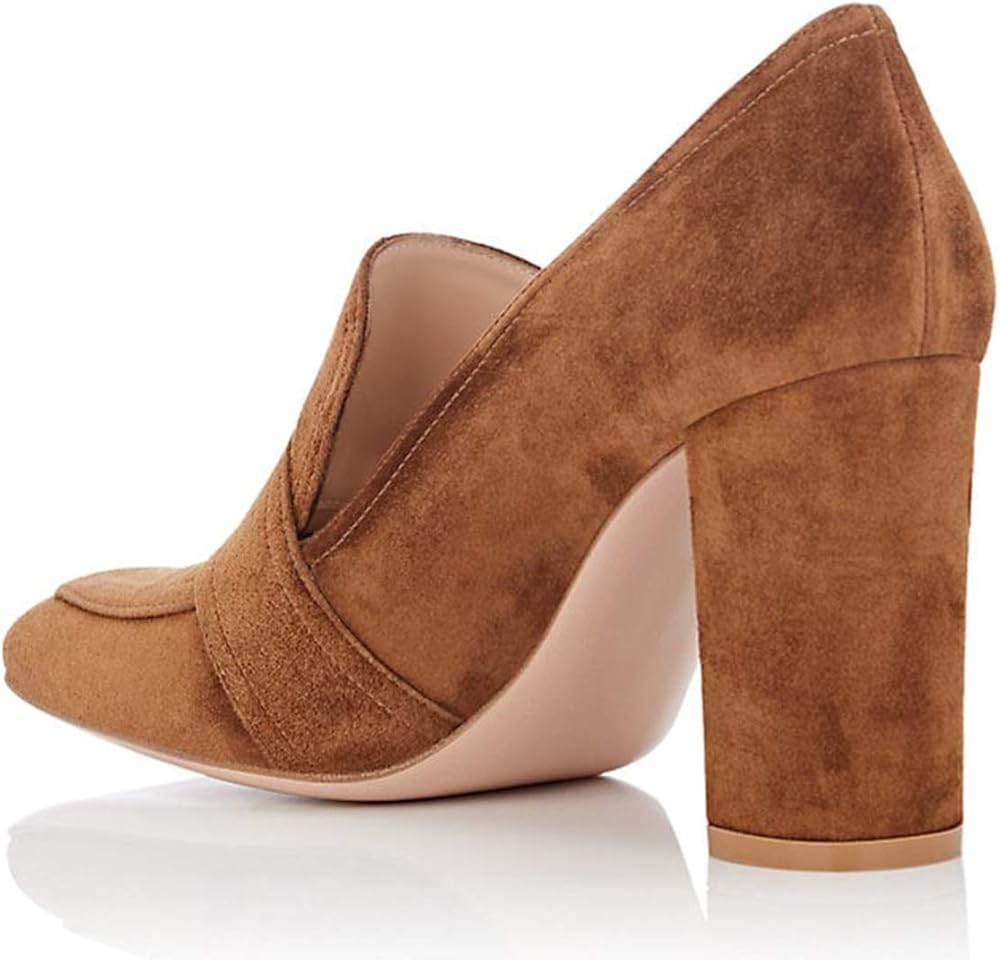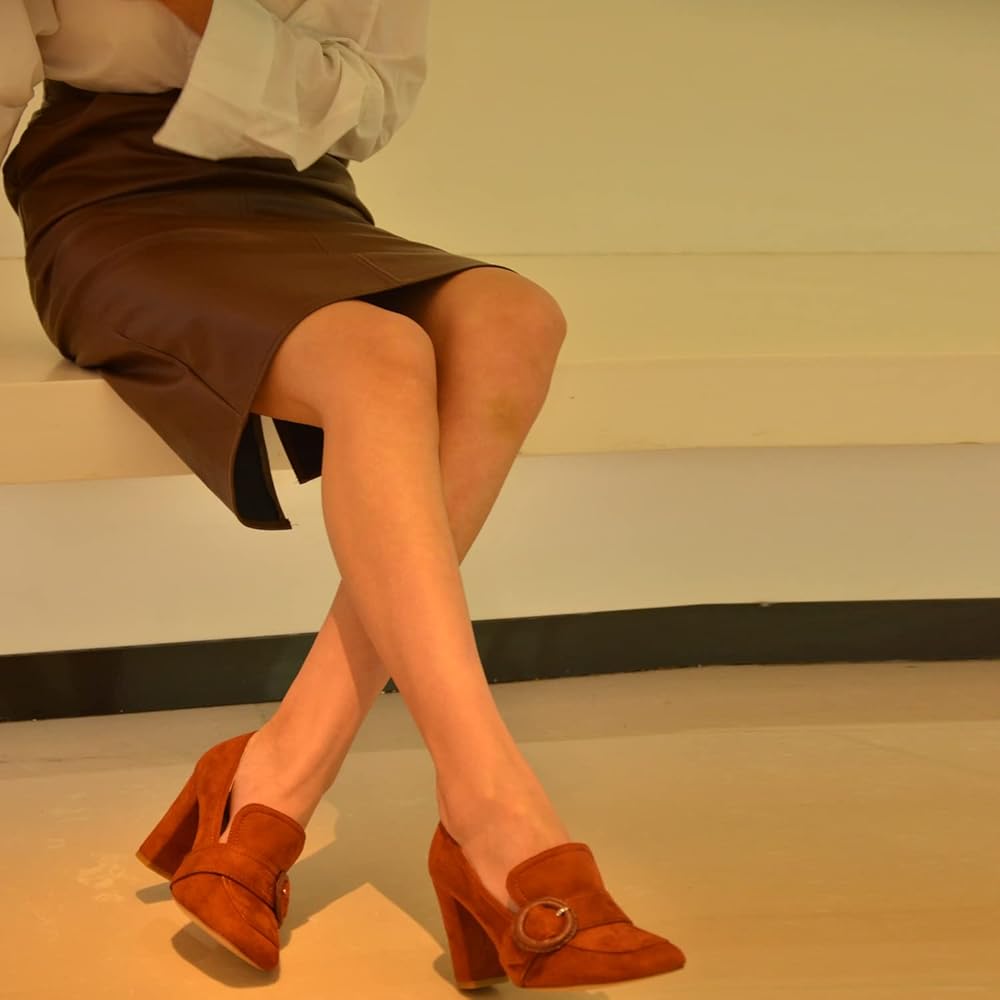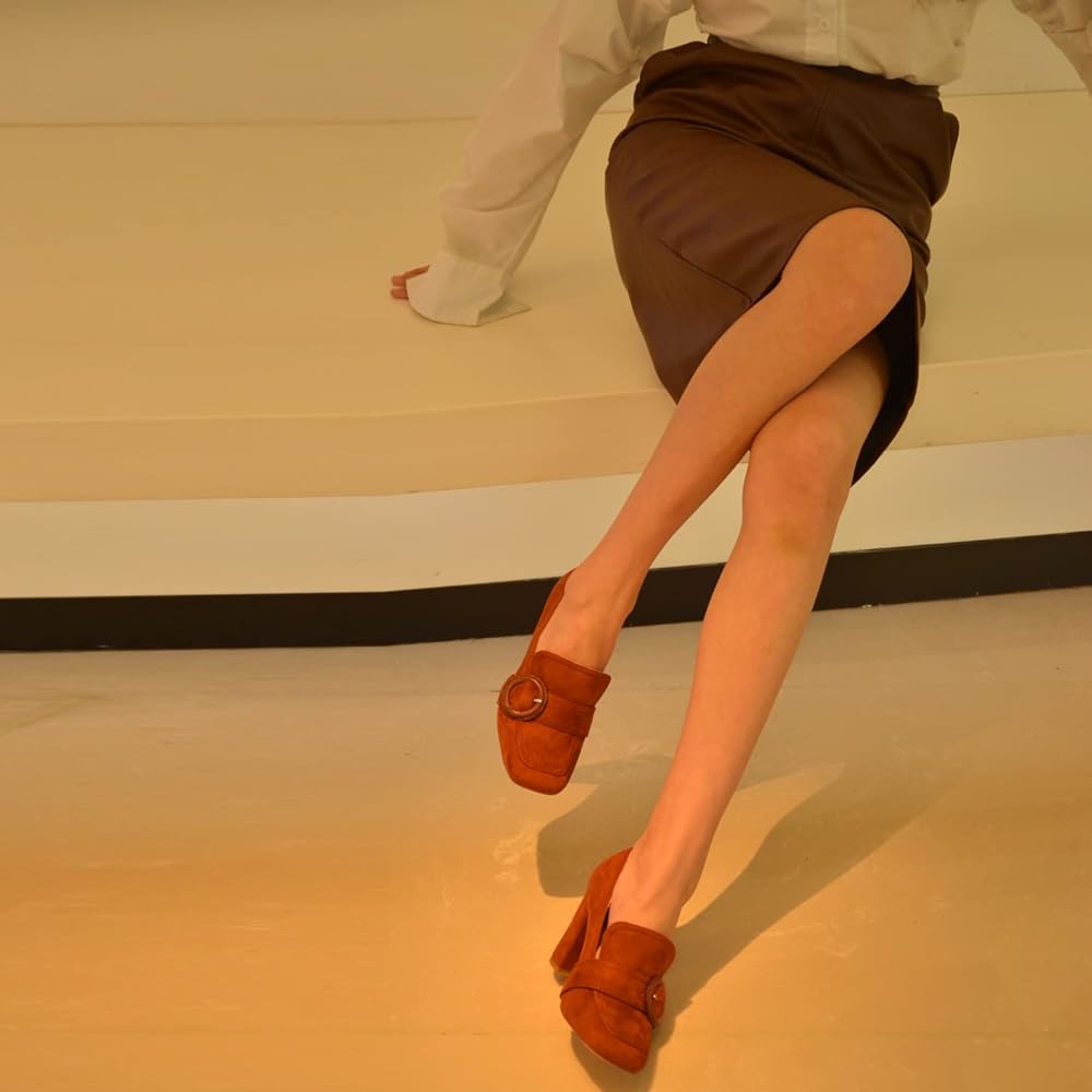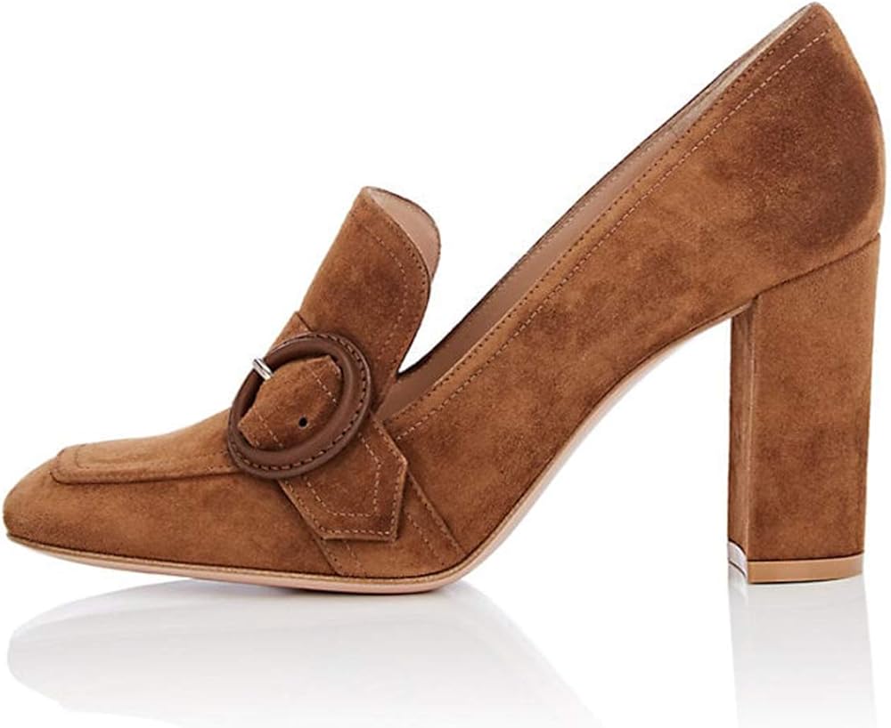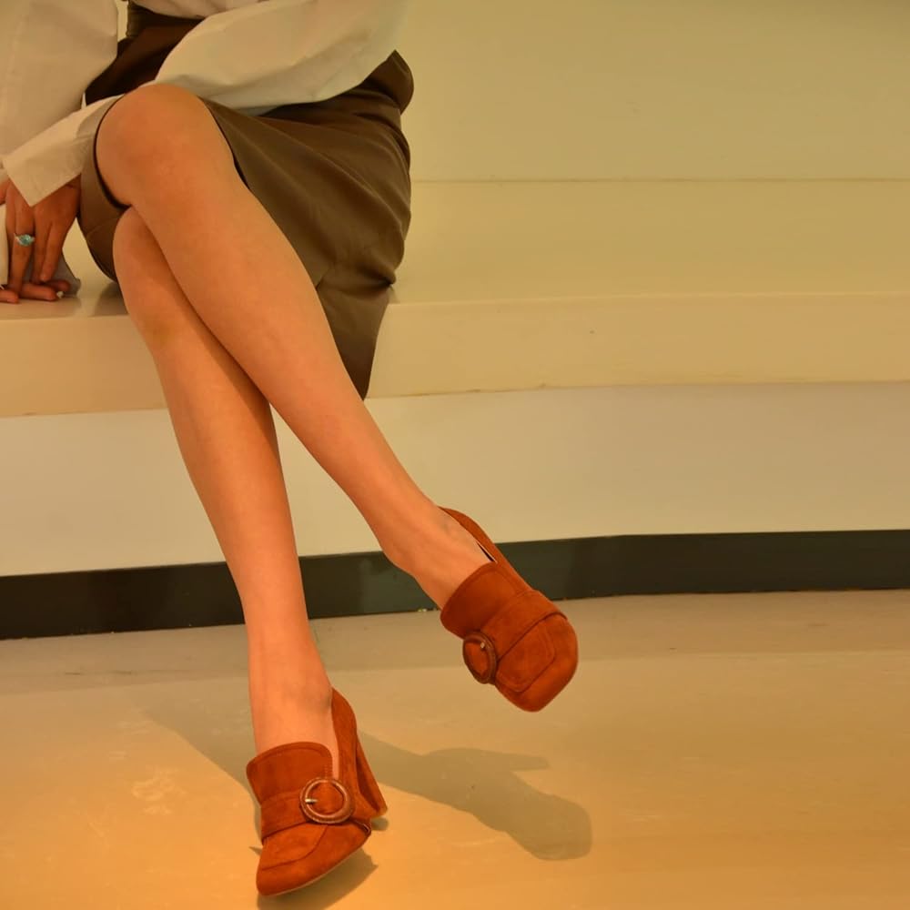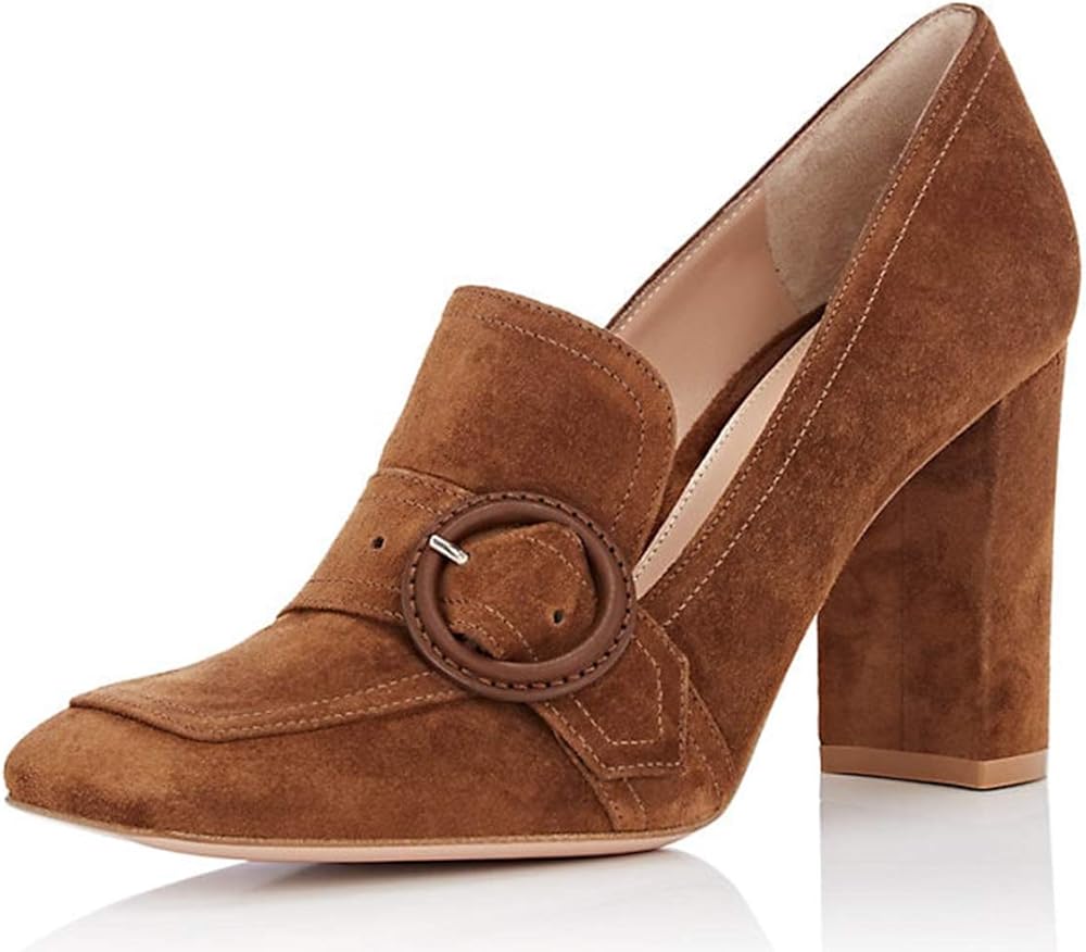 حذاء YDN نسائي بكعب عالٍ مكتنز ومقدمة مربعة بدون كعب سهل الارتداء للمكتب من الجلد السويدي مع إبزيم
