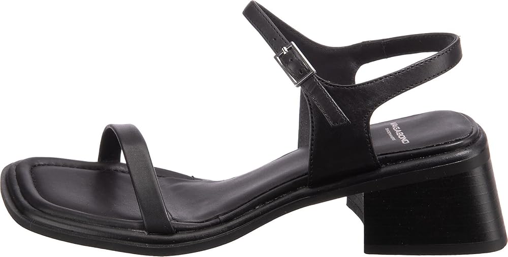 Ines is the modern mid-heel sandal with a pared-down aestetic. The style is crafted in leather with thin leather straps, adjustable ankle strap and subtle square toes. The style sets on thin outsoles and 53mm flared heels.