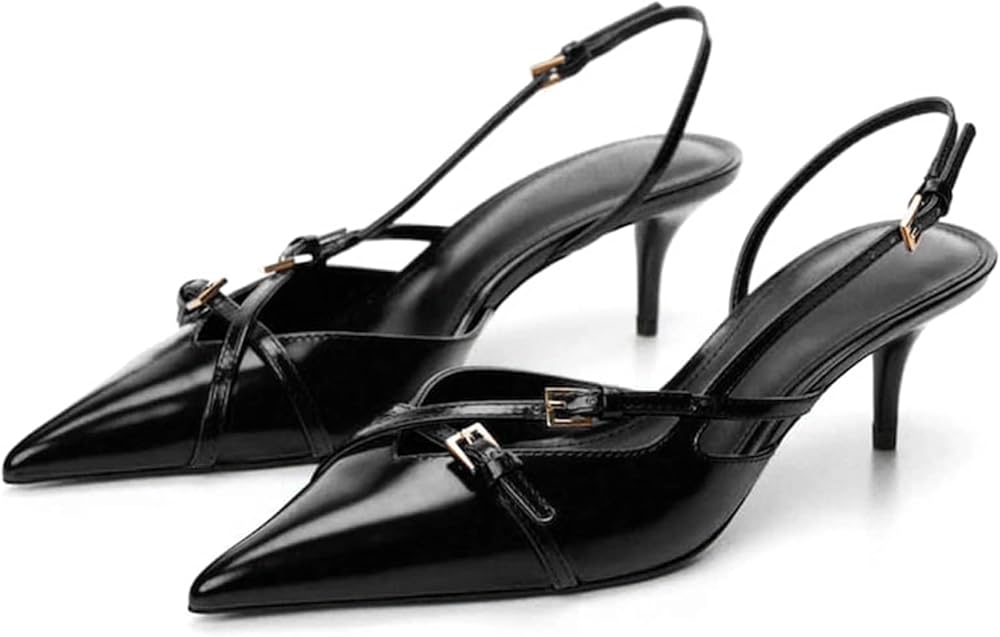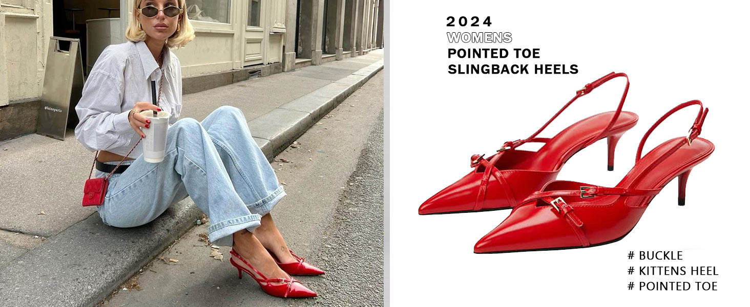 • يبدو الكعب الصغير ذو المقدمة المدببة من Slingback رائعًا مع أي ملابس، مثالي لحفلات الزفاف والحفلات الموسيقية والنوادي المسائية ومكتب العمل والمواعيد اليومية.