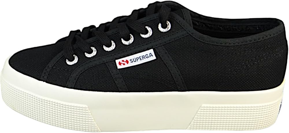 Signature Superga Style , Cotton Canvas Upper , Natural Vulcanized Rubber sole, lace up closure, metal eyelets, 1.3 inch platform sole