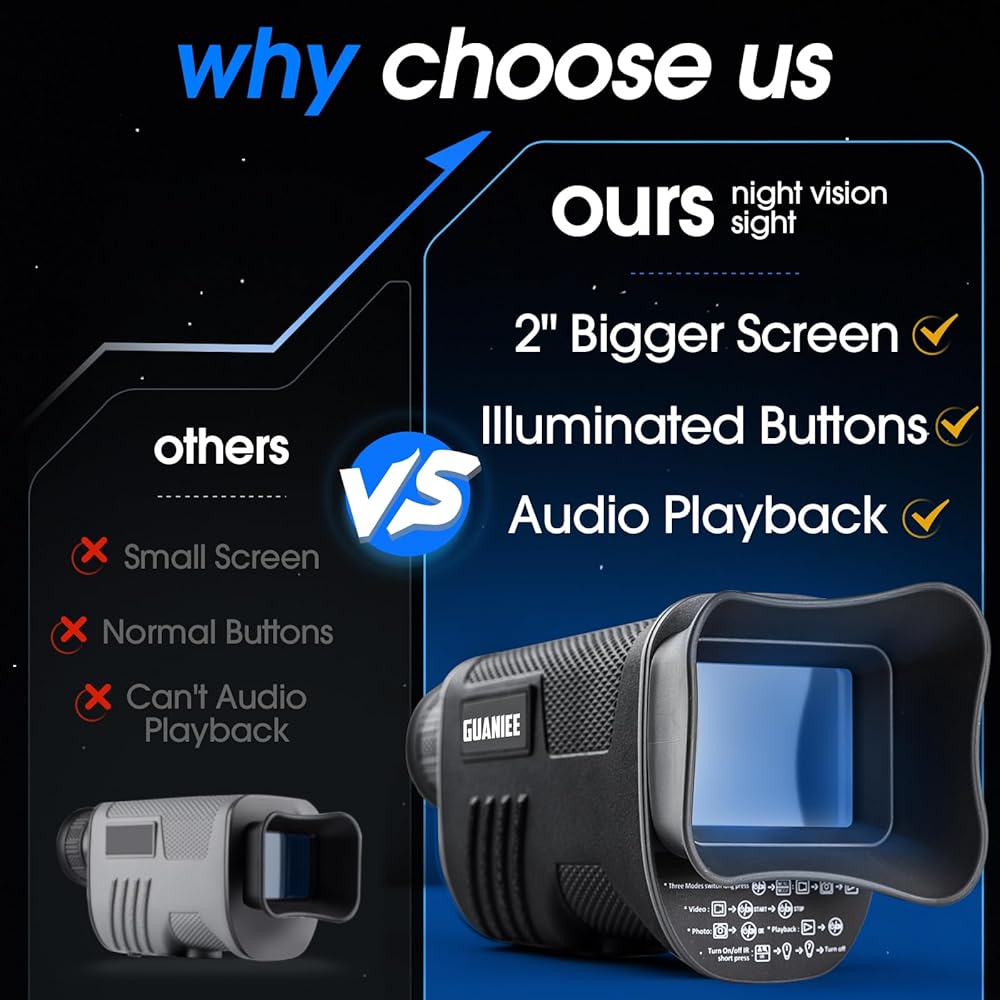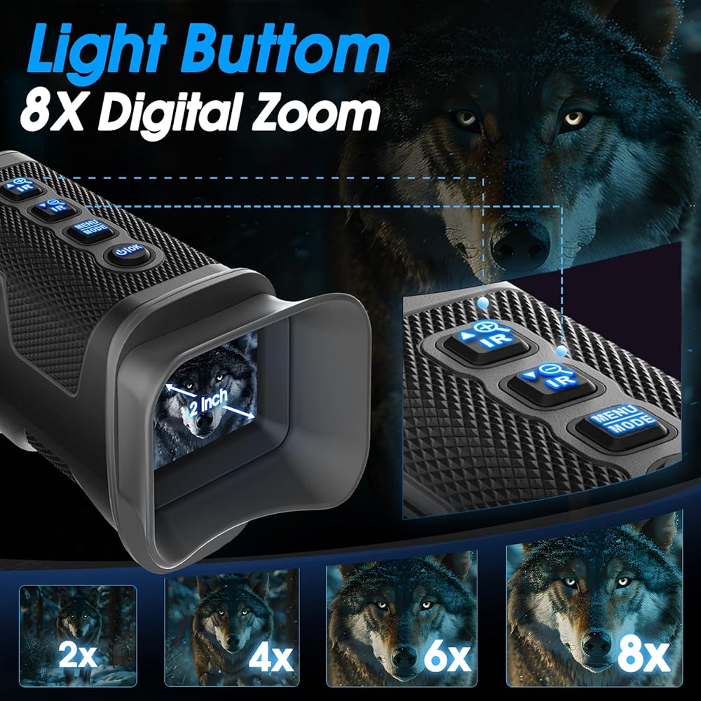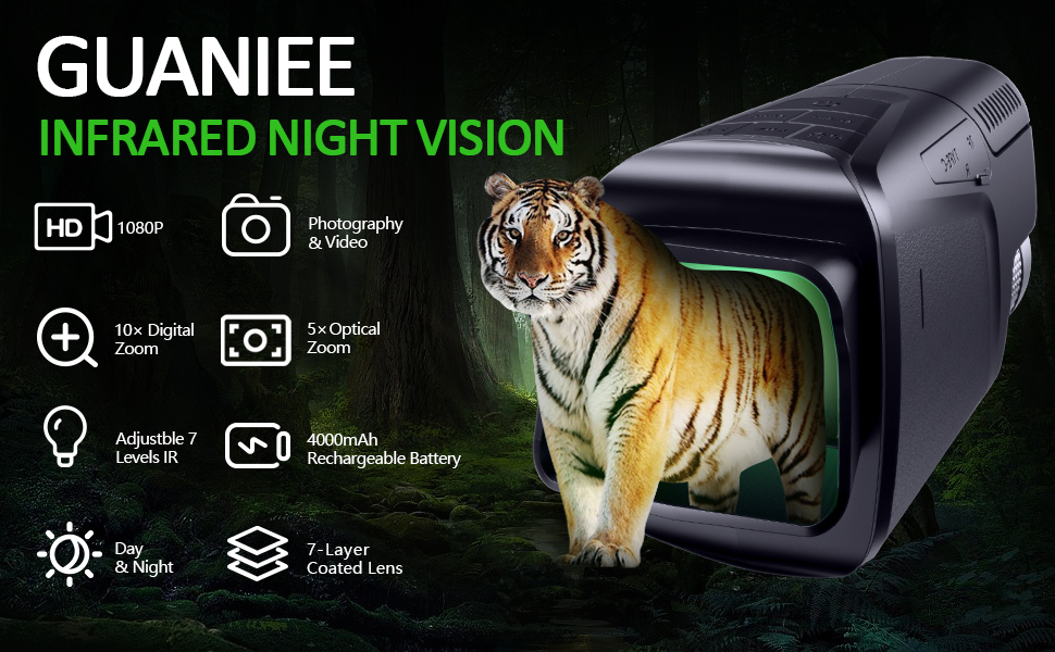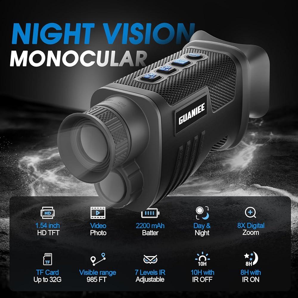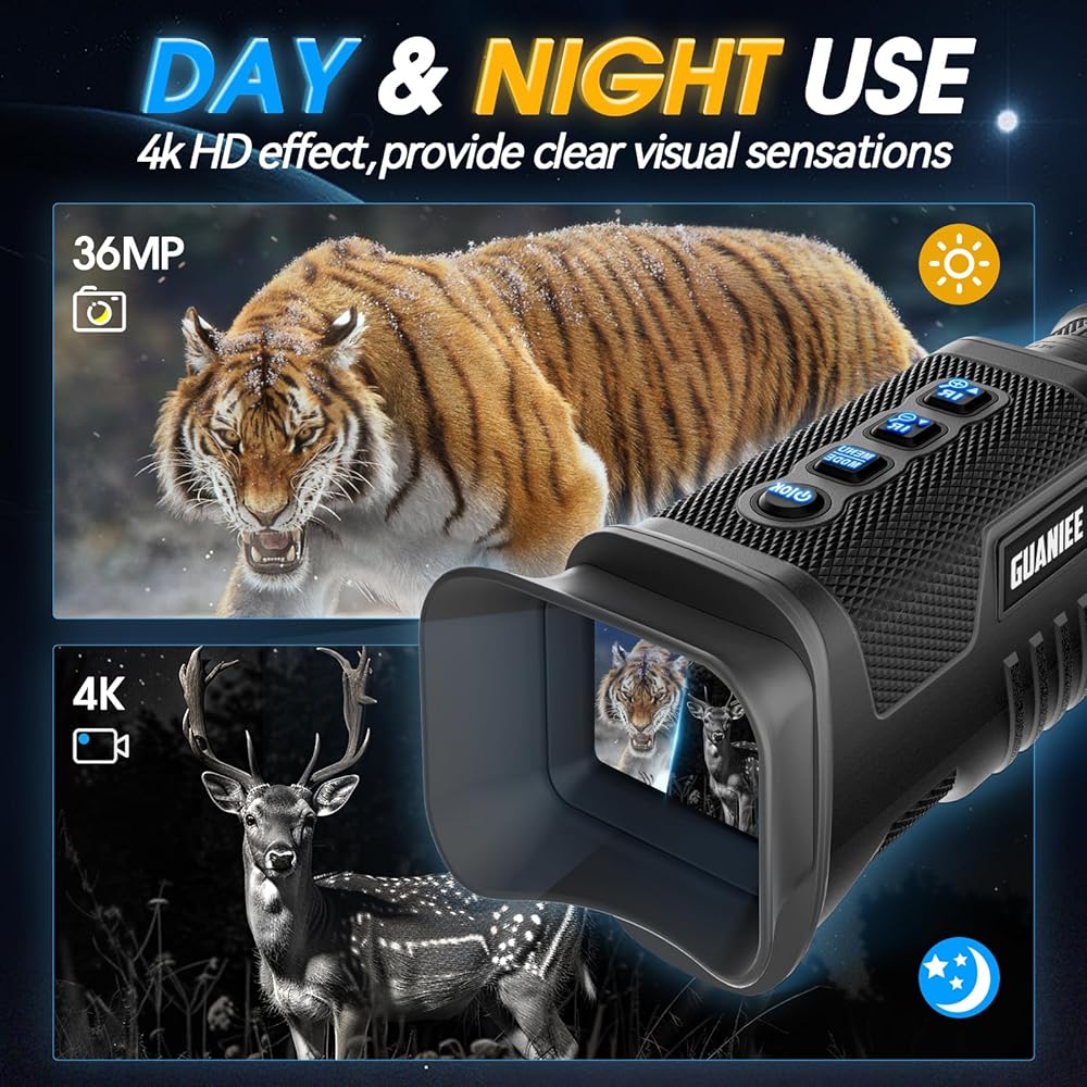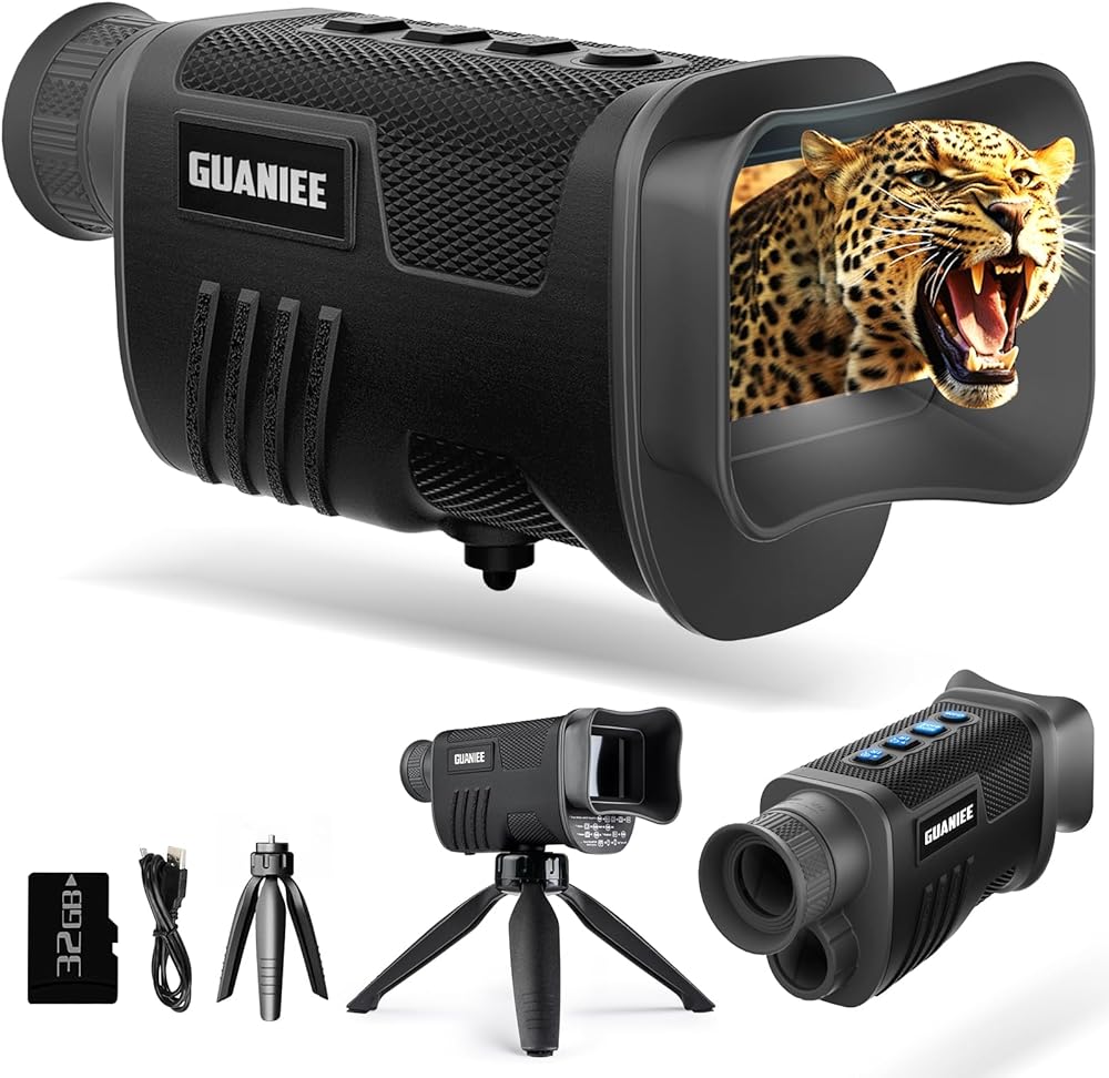 خفيفة الوزن وقابلة للحمل: المنظار الأحادي الأخف يتوافق مع شاشة أكبر. يمكن استخدام منظار الرؤية الليلية للصيد والمراقبة ومشاهدة الطيور والمراقبة الأمنية والتخييم والأماكن الداخلية والخارجية. تأتي الرؤية الليلية أحادية العين مع بطاقة ذاكرة 1 × 32 جيجابايت، وكابل شحن بيانات USB 1 × (النوع C)، وحزام رقبة 1 ×، وحزام يد 1 ×، ودليل 1 ×