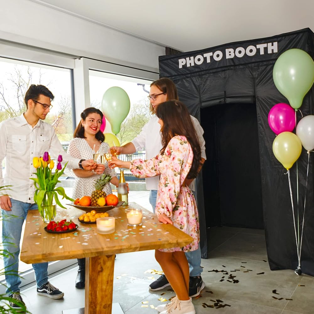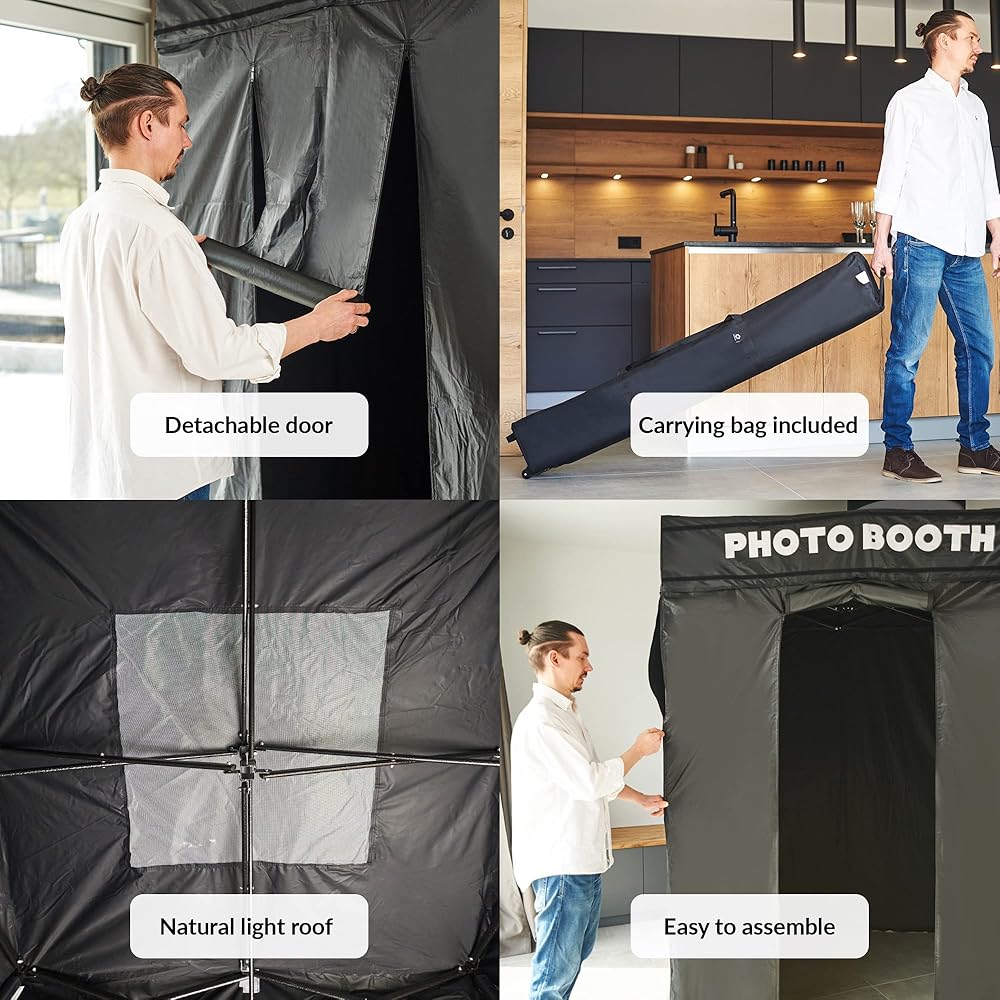 【خطوة إلى الأضواء】قل وداعًا للمساحات الضيقة والإضاءة الضعيفة! إن كشك الصور في الغرفة المظلمة كبير بما يكفي لاستيعاب مجموعات يصل عددها إلى 10 أشخاص بشكل مريح. لن تضطر أبدًا إلى القلق بشأن صور الحدث الخاصة بك بعد الآن.