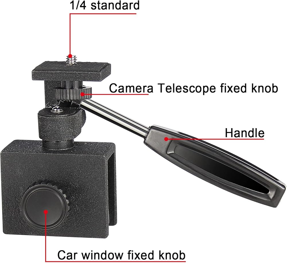 يأتي مع خيط تثبيت 1/4 بوصة —— يسهل توصيله بالمنظار الأحادي والمنظار ونطاقات الإكتشاف. إنه الحل الأمثل لمراقبة المناظر الطبيعية أو المناظر البحرية أو الحياة البرية الموجودة في السيارة في أي وقت.