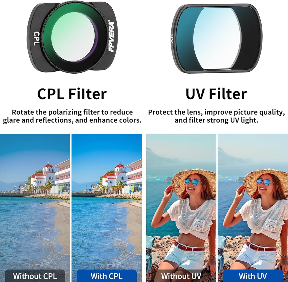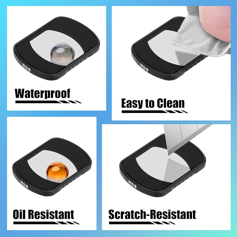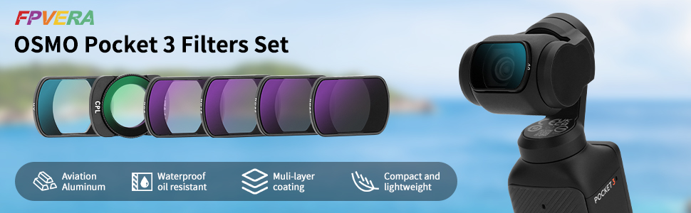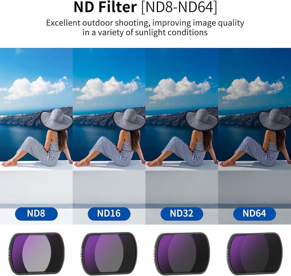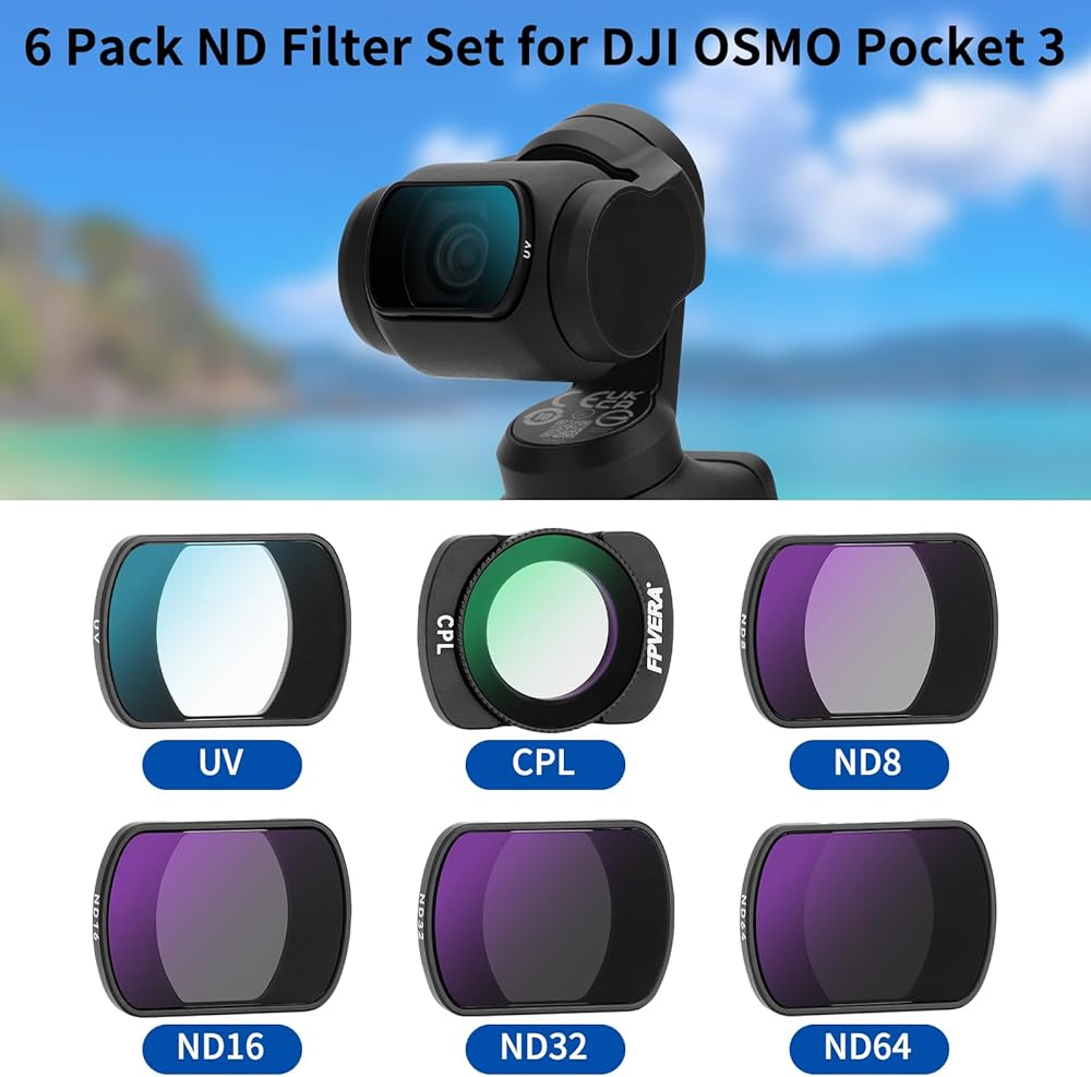 • ملحقات OSMO Pocket 3: تم تصميم مجموعة الفلتر هذه خصيصًا لـ DJI OSMO Pocket 3. تشتمل على: ND8، ND16، ND32، ND64، UV، CPL، ومسح العدسات.
