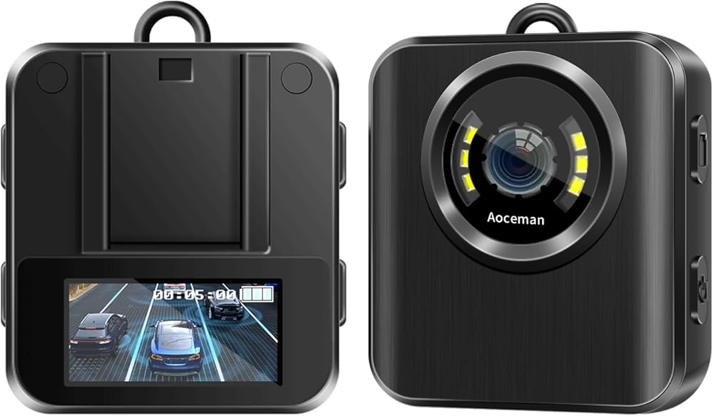 كاميرا الجسم مع كاميرا تسجيل الفيديو - كاميرا الجسم مع 1080P HD مدمجة في بطاقة ذاكرة سعة 32 جيجابايت، وكاميرات عرض 0.96 بوصة، ومشبك يمكن ارتداؤه على كاميرات تسجيل فيديو لمدة 4 ساعات للمنزل والخارج