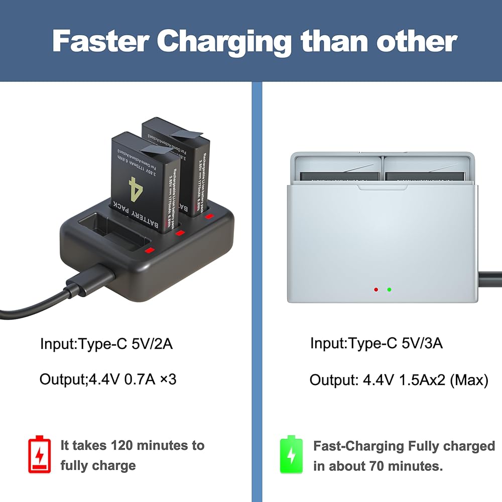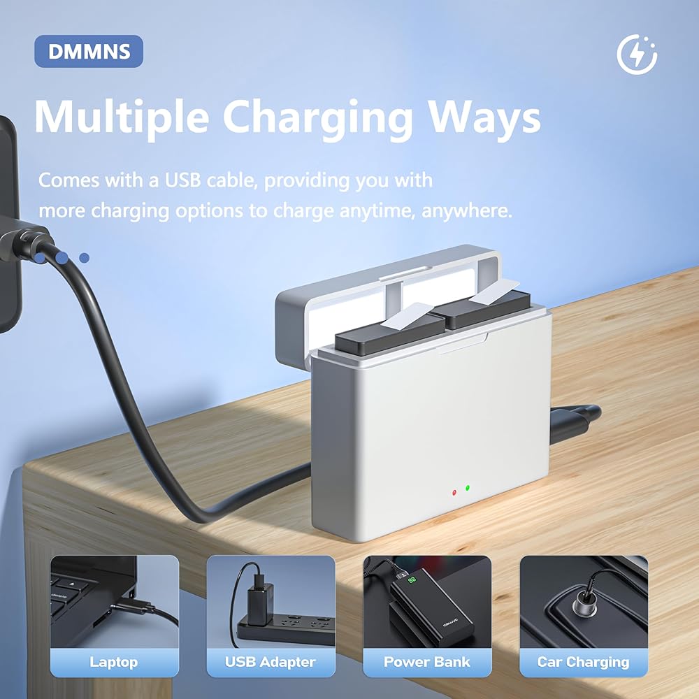 🔋[طرق شحن متعددة] تدعم مجموعة متنوعة من أجهزة الشحن، بما في ذلك (بنك الطاقة، شاحن السيارة، الكمبيوتر المحمول، قابس USB)، جميعها يمكنها شحن بطارية DJI Osmo Action 3&4 القصوى في أي وقت وفي أي مكان.