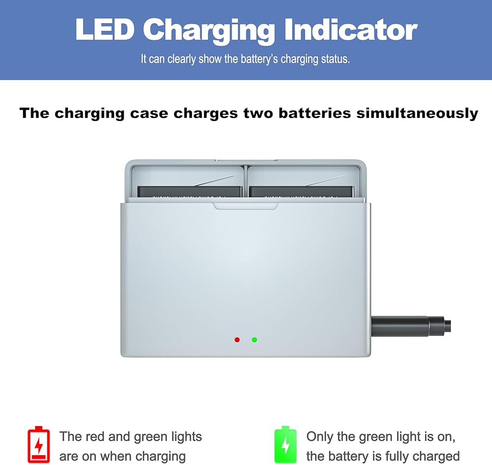🔋إضاءة LED ذكية: عندما يتحول ضوء المؤشر إلى اللون الأخضر، فهذا يعني أن بطارية DJI Osmo Action 3&4 القصوى قد تم شحنها بالكامل، مما يسمح لك بمعرفة حالة الشحن بسهولة.