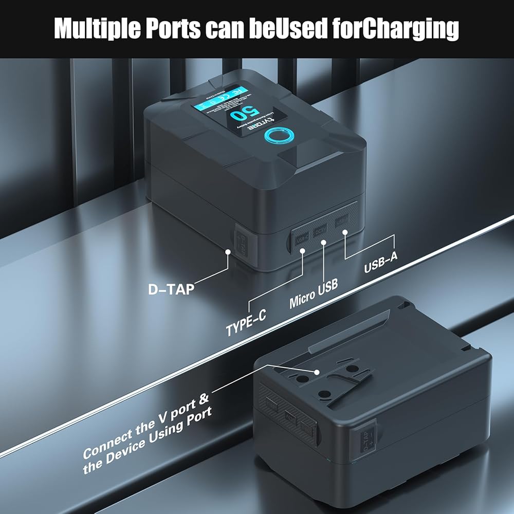 【تطبيق واسع】: بطارية V-lock متوافقة مع BMPCC 6K Pro، Canon EOS R5C، Sony FX3، FX30، A7sII، PortKeys/Feelworld Monitor، مجموعة متنوعة من كاميرات الفيديو الاحترافية، ومصابيح LED، وشاشات الفيديو، وأجهزة الإرسال اللاسلكية، وأجهزة MacBooks، والهواتف الذكية ، وغيرها من المعدات.