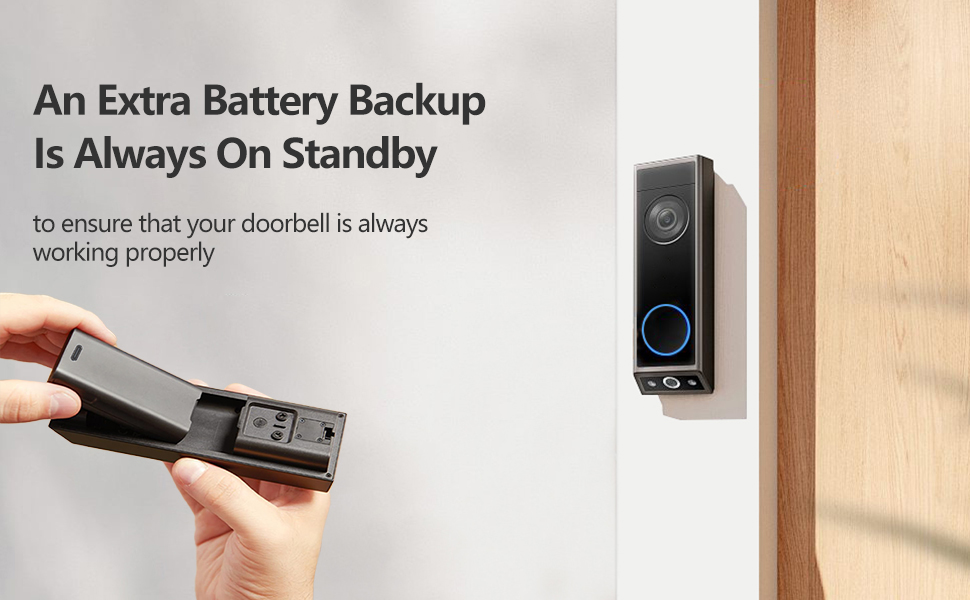 【سهلة استبدال البطارية】تم تصميم بطارية احتياطية إضافية ومشبك بديهي يسمح لك بتغيير البطارية بسرعة للحفاظ على جرس الباب بالفيديو الآمن في حالة عمل طوال الوقت.
