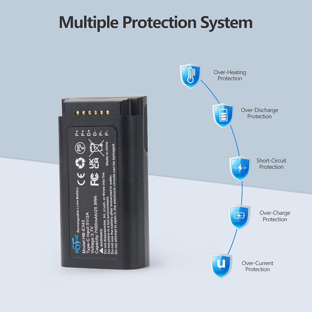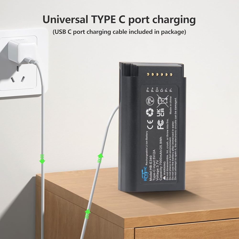 بطارية جرس باب فيديو E340 مطورة من REYTRIC متوافقة مع جرس باب فيديو Eufy Security E340، حزمة بطارية قابلة لإعادة الشحن بقدرة 7000 مللي أمبير في الساعة مع كابل USB-C