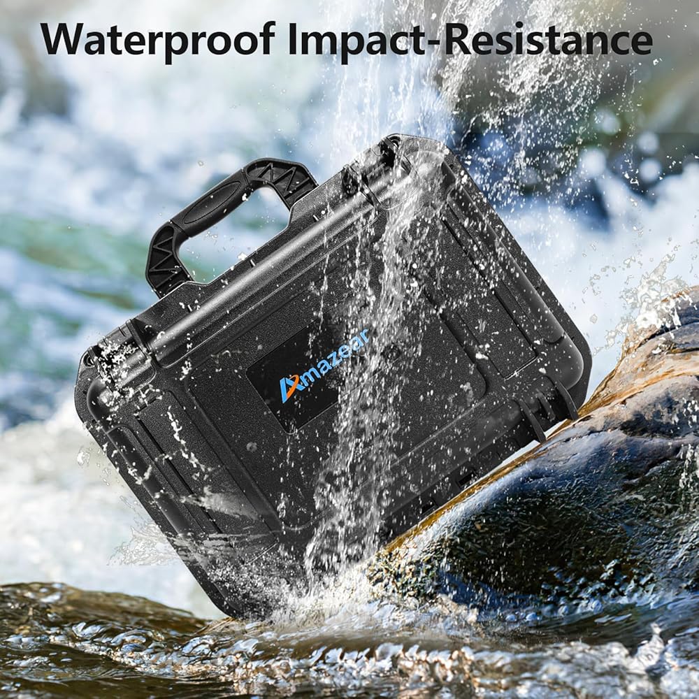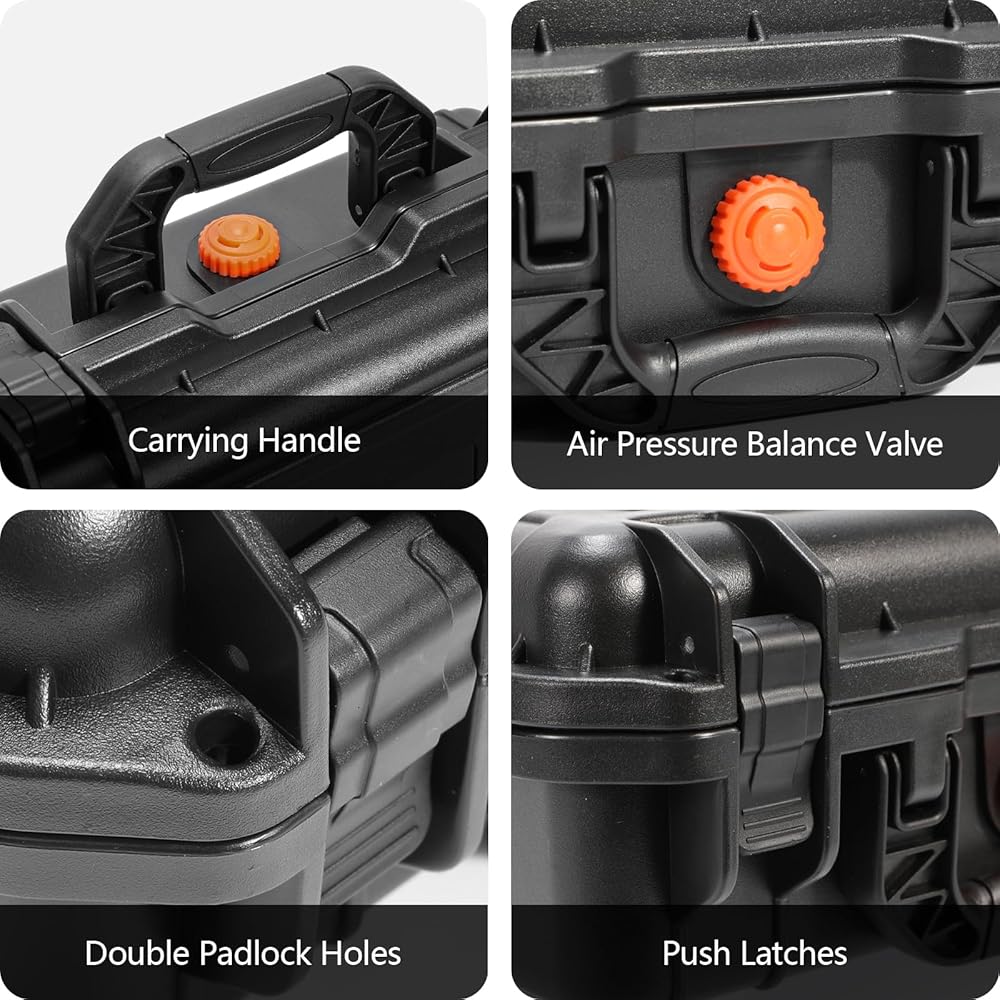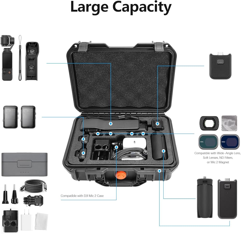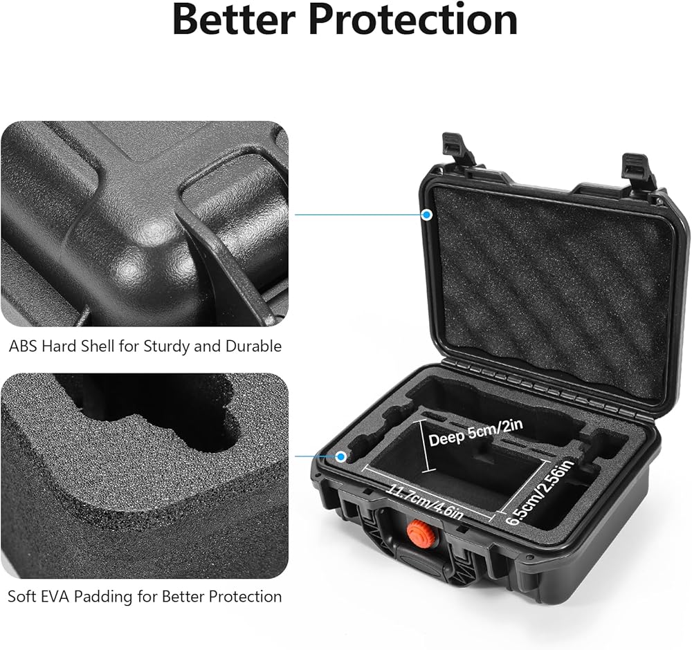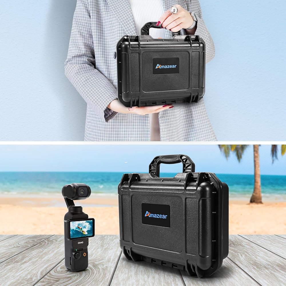 【حماية أفضل】جراب Amazear الصلب المقاوم للماء والغبار يتناسب تمامًا مع كاميرا DJI Osmo Pocket 3 وملحقاتها. يتم استخدام تصميم صمام توازن ضغط الهواء عندما لا يمكن فتح العلبة بشكل طبيعي. يتم توفير فتحات قفل مزدوجة للعملاء الذين يحتاجون إلى أقفال.