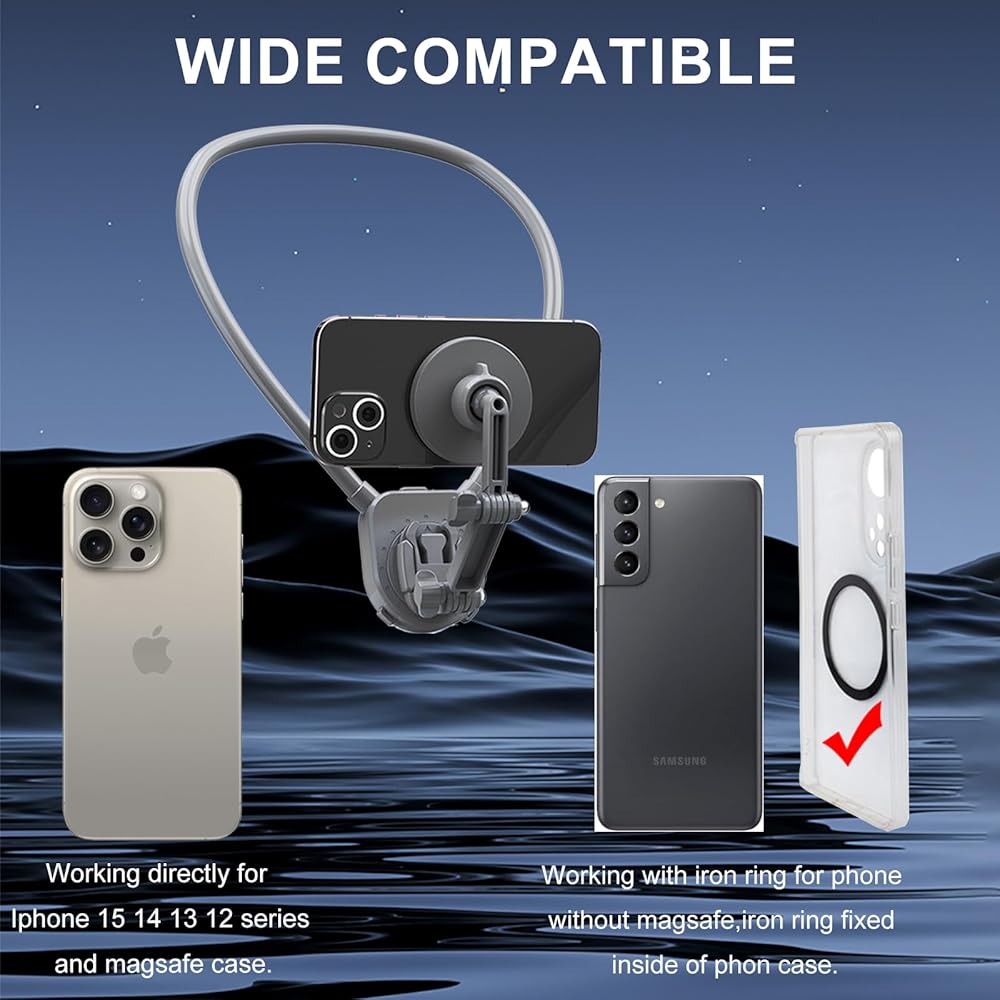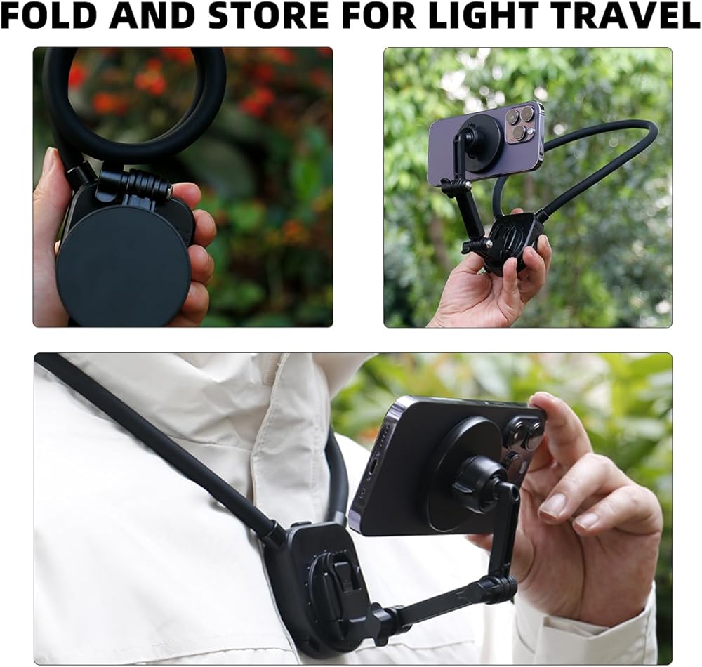 【One Key 360° Adjustable】The Magnetic neck mount allows 360 degree rotation for your shooting from any angles, meet your all-around shooting requirement. Enjoy the fun of shooting.it allows you lock your camera at the best visual angle and capture your best shots