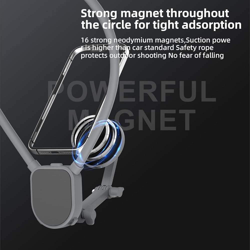 حامل عنق مغناطيسي من PellKing لـ Magsafe (رمادي)، حامل هاتف للرقبة بدون استخدام اليدين POV/Vlog تسجيل فيديو على الرقبة لهاتف iPhone 15 14 13 12 Plus Pro Max Mini Series والهواتف الأخرى