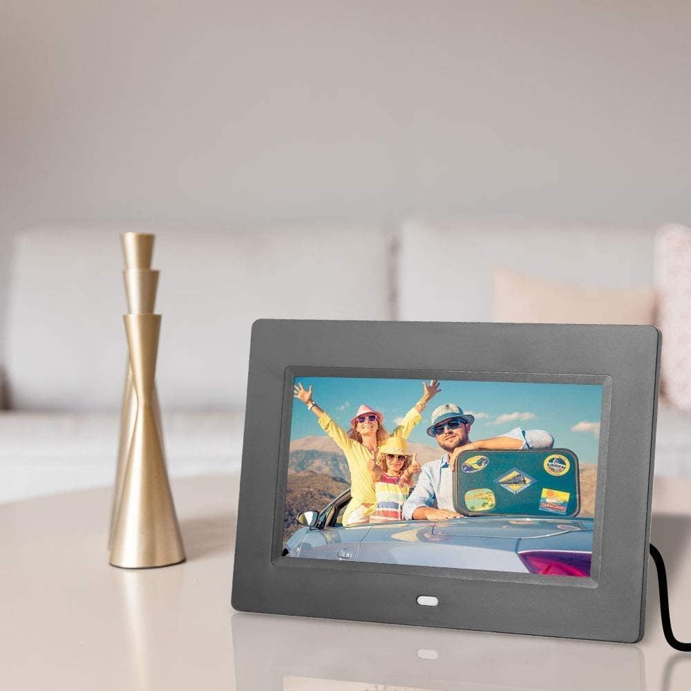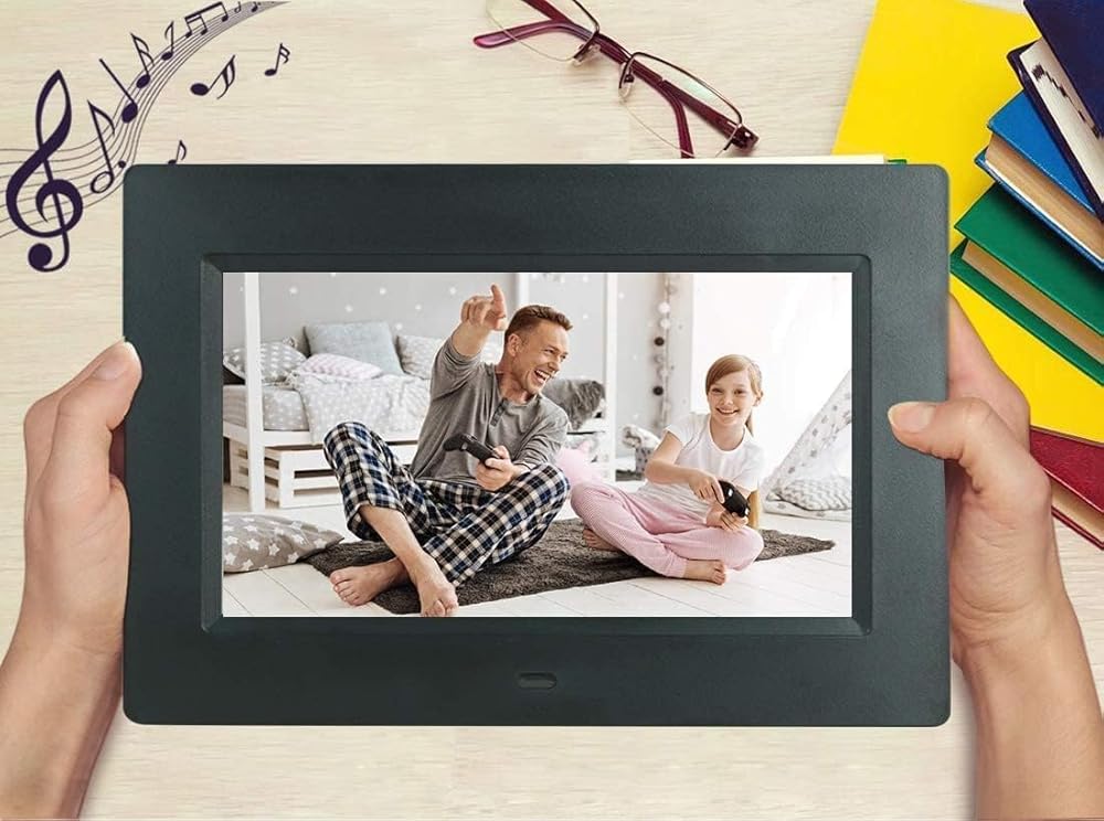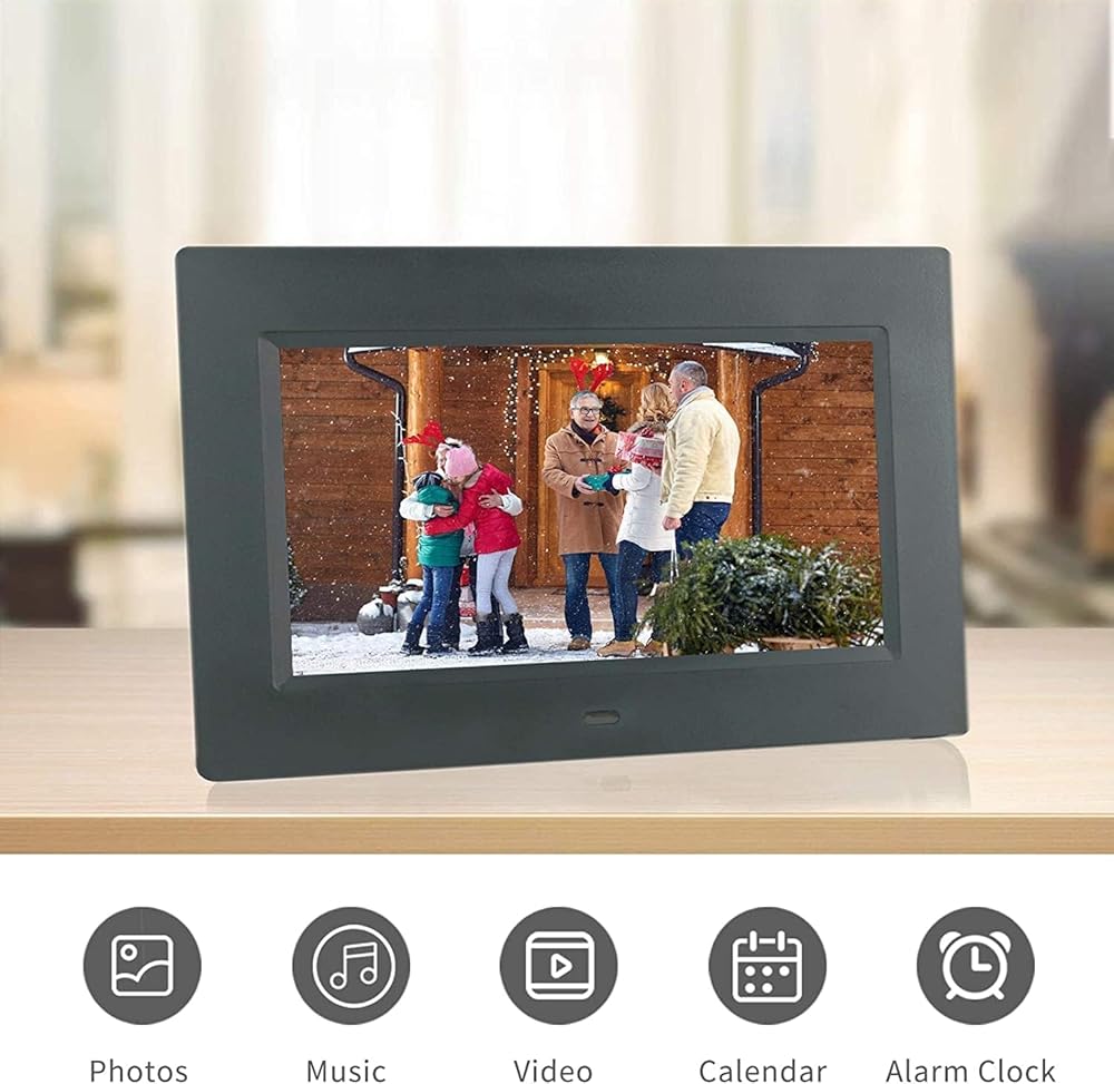 إطار صور رقمي بإطار صور إلكتروني مقاس 7 بوصات وشاشة IPS عريضة بدقة 1024 × 600 - وظيفة التقويم/الساعة، مشغل MP3/ صور/فيديو مع جهاز تحكم عن بعد، يدعم بطاقة SD وUSB