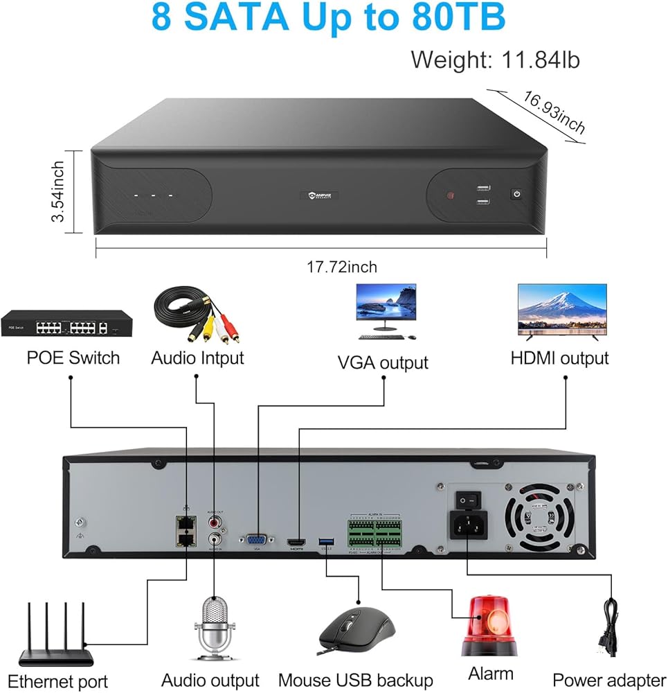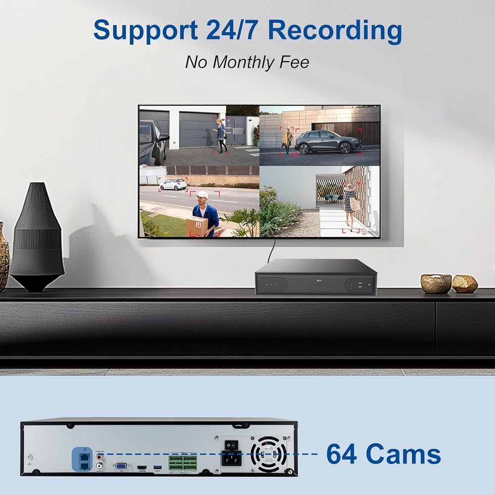 • 【64 قناة NVR ودقة 12 ميجابكسل】يدعم مسجل الفيديو الشبكي Anpviz NVR ذو 64 قناة التسجيل والتشغيل والعرض المباشر بدقة تصل إلى 12 ميجابكسل. دعم 12MP/8MP/6MP/5MP/4MP/3MP/1080P IP PoE الكاميرا. ملاحظة: يدعم NVR بدقة 12 ميجابكسل تلفزيون 4K أو مخرج اتصال واجهة HDMI أو VGA.