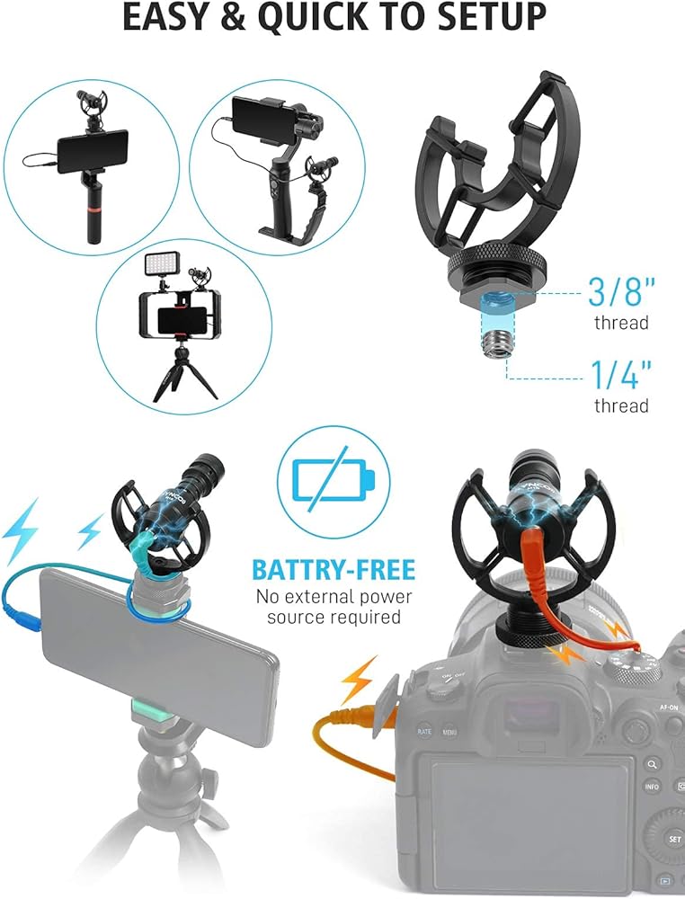 【Universal Compatibility】Included with a 3.5mm TRS and TRRS cable, Mic-M2S shotgun microphone can be applied to most devices with 3.5mm inputs such as DSLR cameras, camcorders, recorders, smartphones, tablets and laptops. Any questions during the use of the process can be promptly contacted with us.