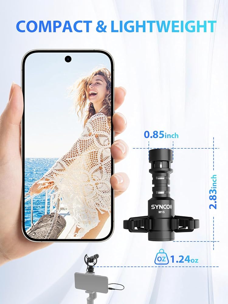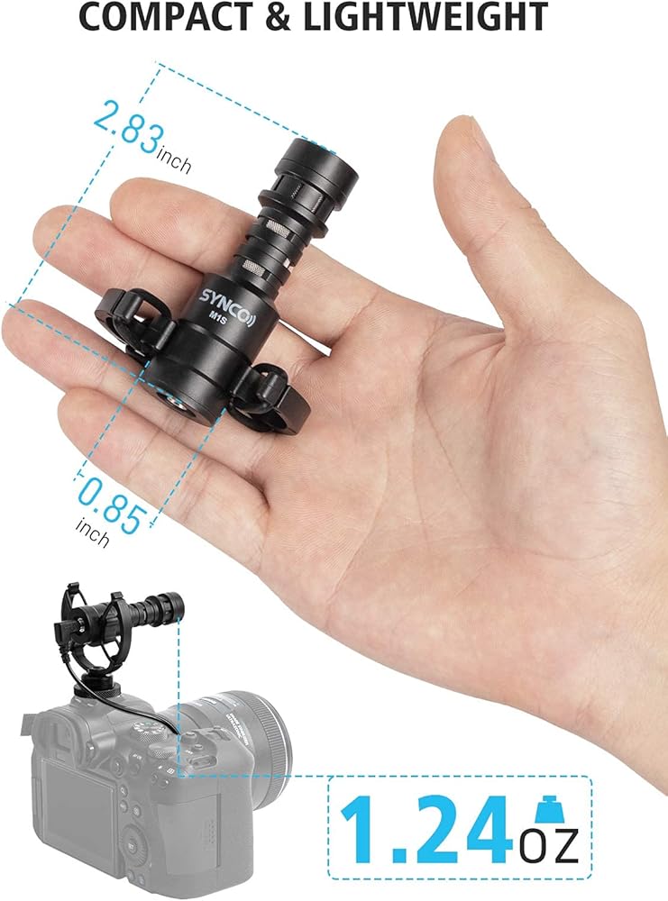 SYNCO M2S Video Microphone, Mini Cardioid Directional On-Camera Mic for DSLR Camera Smartphone with 3.5mm, Compact Shotgun Microphone