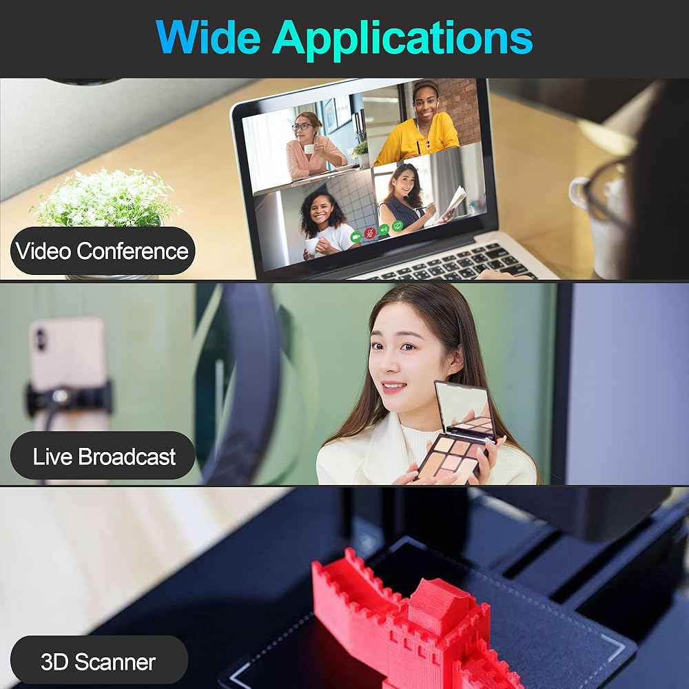 【كاميرا UHD 4K USB HDMI】تتمتع كاميرا USB 4K UHD هذه بدقة تصل إلى 3840x2160 (30 إطارًا في الثانية) وتظهر كل التفاصيل بوضوح للحصول على فيديو حاد وواقعي. يمكن إجراء البث المباشر والبث المباشر دون تأخير أو تشويه. يمكن نقل التعبير عن الموضوع وحيوية المشهد بوضوح.