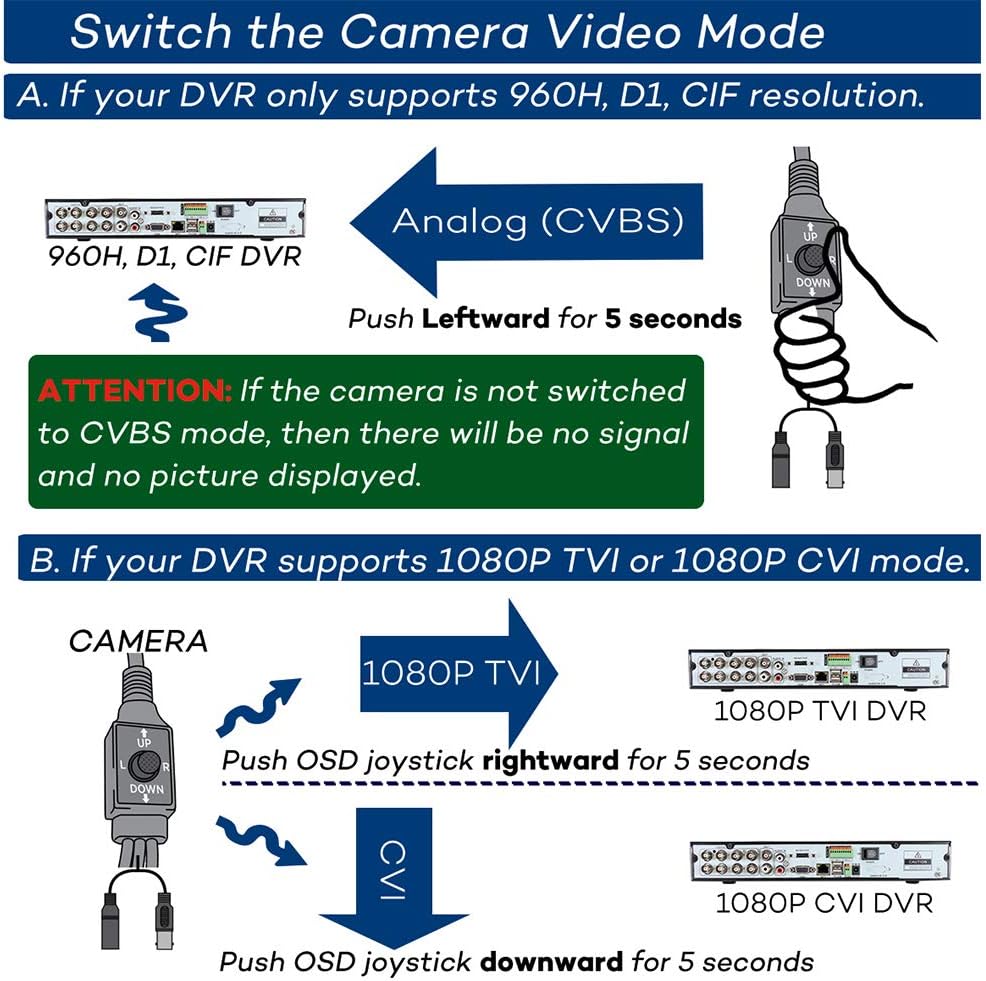 - 4 أوضاع لإخراج الفيديو: 2.0 ميجابكسل HDTVI، 2.0 ميجابكسل HDCVI، 1080P AHD و960H مخرج BNC سلكي.