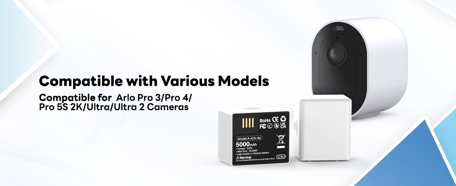 ✔️【متوافقة تمامًا】بطارية ليثيوم أيون قابلة لإعادة الشحن مصممة لكاميرات Arlo، متوافقة مع كاميرا Arlo Pro 5/5S 2K/Arlo Pro 3/Pro 4/Ultra/Ultra 2