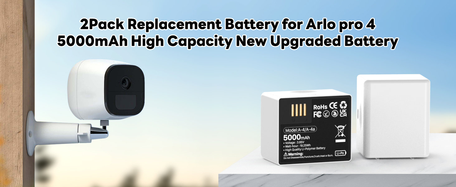 عبوتان من بطارية بديلة بقدرة 5000 مللي أمبير في الساعة لـ Arlo pro 4، إصدار جديد 2024 من بطارية ليثيوم عالية السعة، متوافقة مع كاميرا Arlo Pro 5/5S 2K/Arlo Pro 3/Pro 4/Ultra/Ultra 2