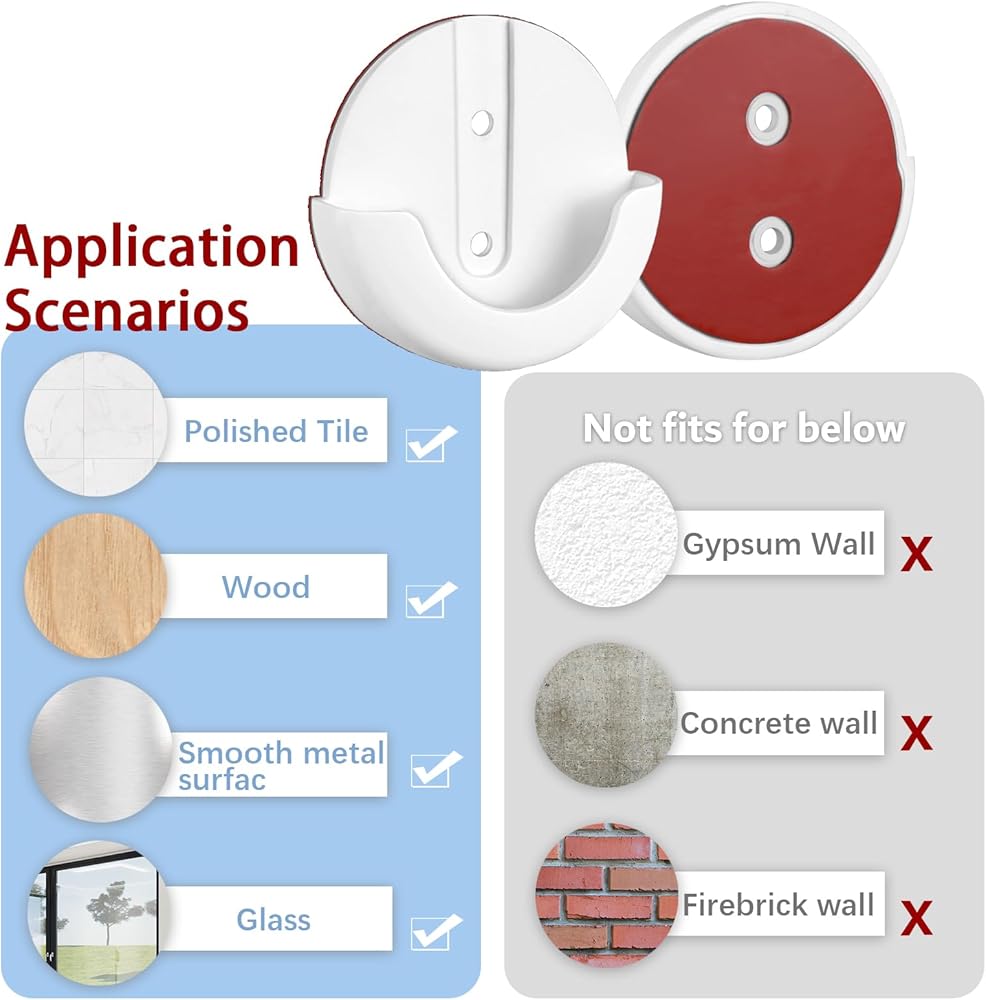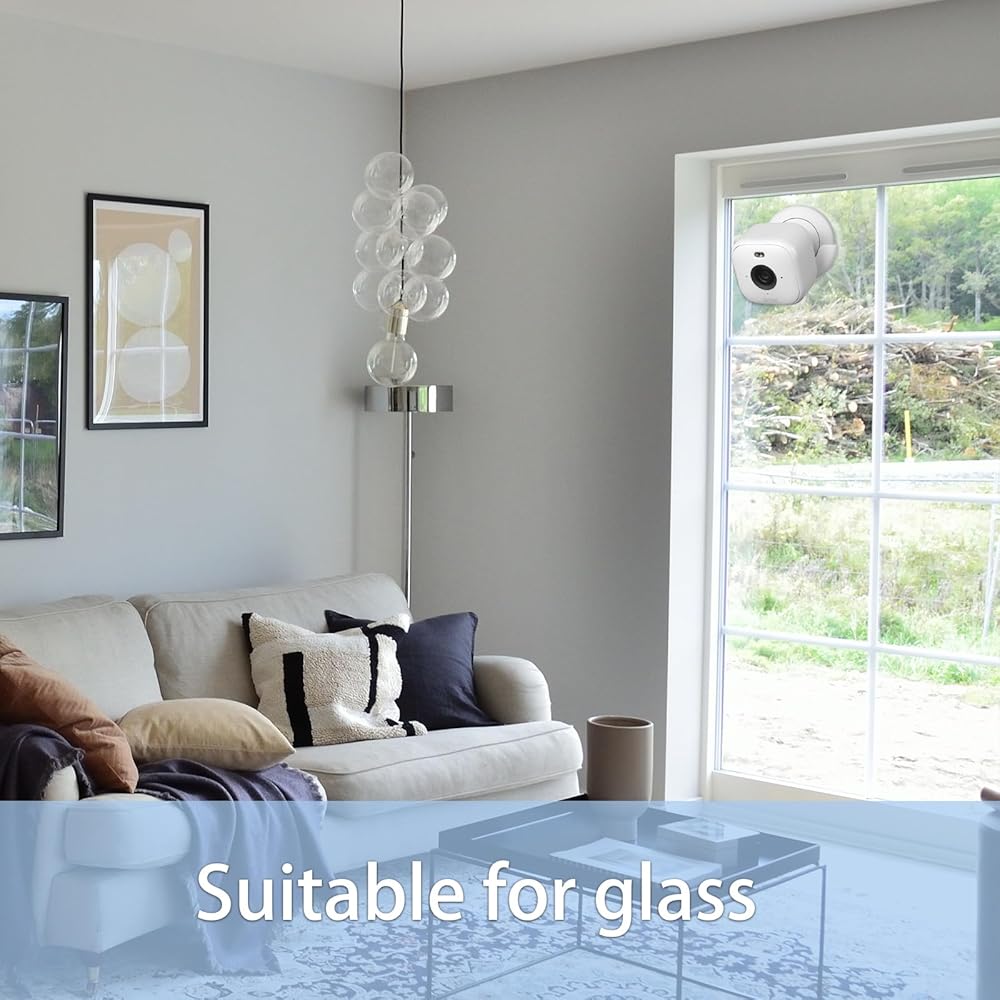 Versatility - Our strong adhesive mounts securely attach to a variety of interior surfaces, including glass, tile, metal, marble and other smooth surfaces. (Note: In order to better fix the camera, it is recommended to install it on a smooth and clean glass surface, wooden board and tile surface wall)