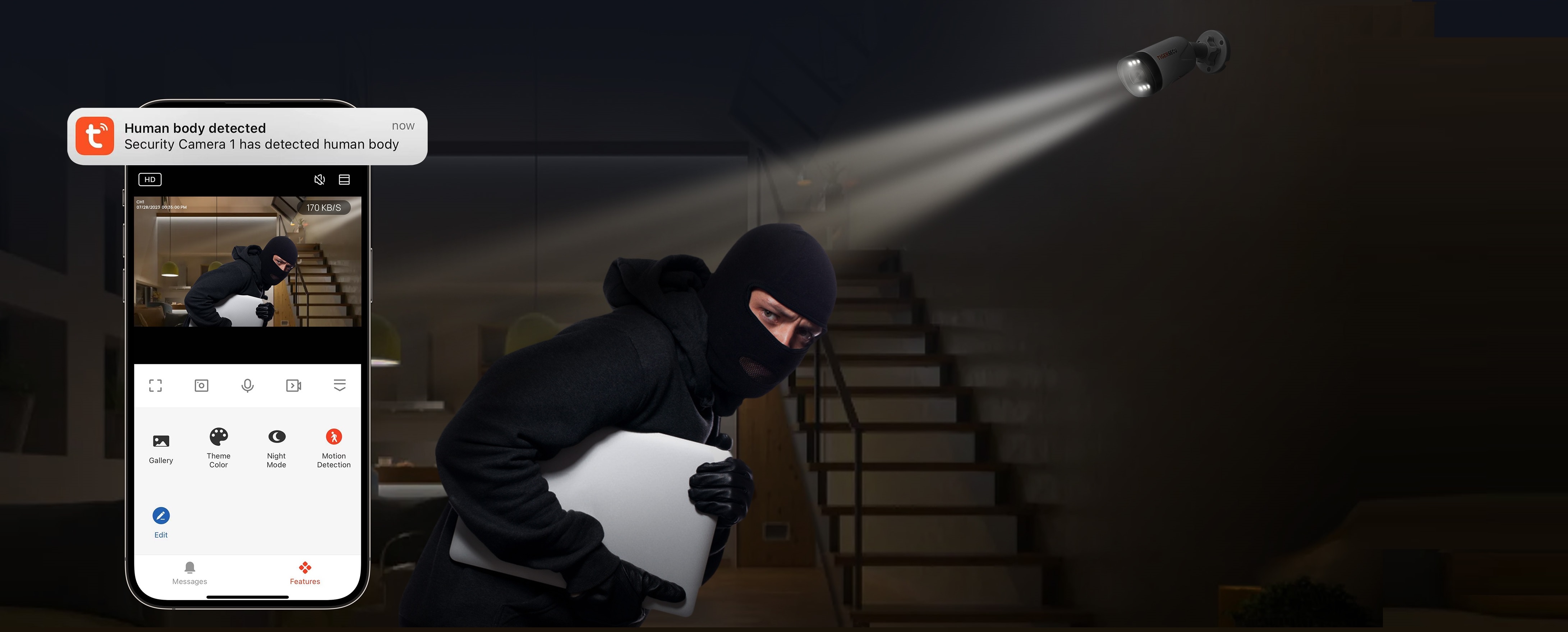 شاهد الوجوه ولوحات الأرقام والطرود والمزيد بدقة وضوح تبلغ 5 ميجابكسل، ووضوح 2.4 مرة من 1080 بكسل مع تقريب رقمي قوي. استمع إلى الضوضاء والأصوات خارج الشاشة باستخدام الميكروفون المدمج وإمكانية تسجيل الصوت. كاميرات IP66 معدنية شديدة التحمل مقاومة للعوامل الجوية للحماية الداخلية والخارجية في المطر والثلج والحرارة على مدار العام.