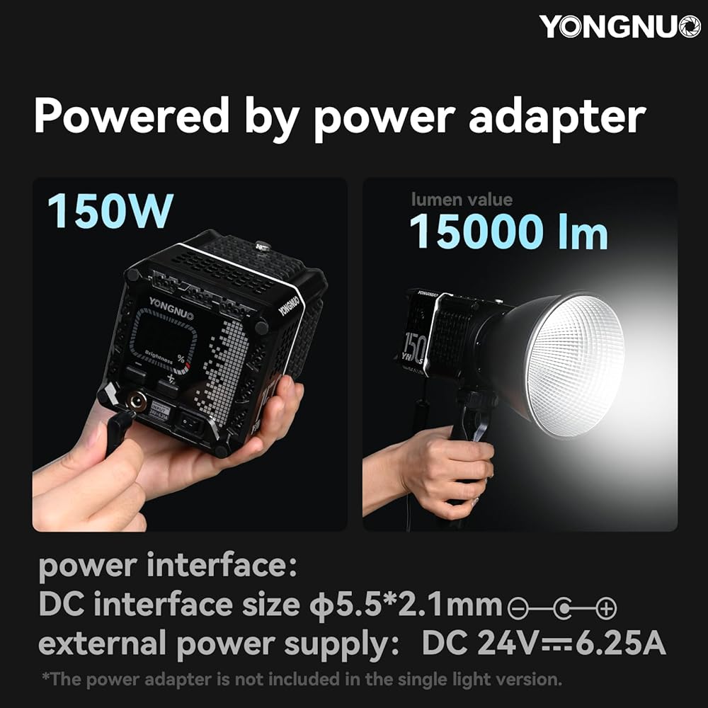مجموعة إضاءة فيديو YONGNUO YN150S LED، ضوء نهاري 150 وات 5600 كلفن، حامل COB Bowens مع مصدر طاقة وحامل، ضوء إخراج مستمر محمول للتصوير الفوتوغرافي، 15000Lux CRI95+ أضواء استوديو