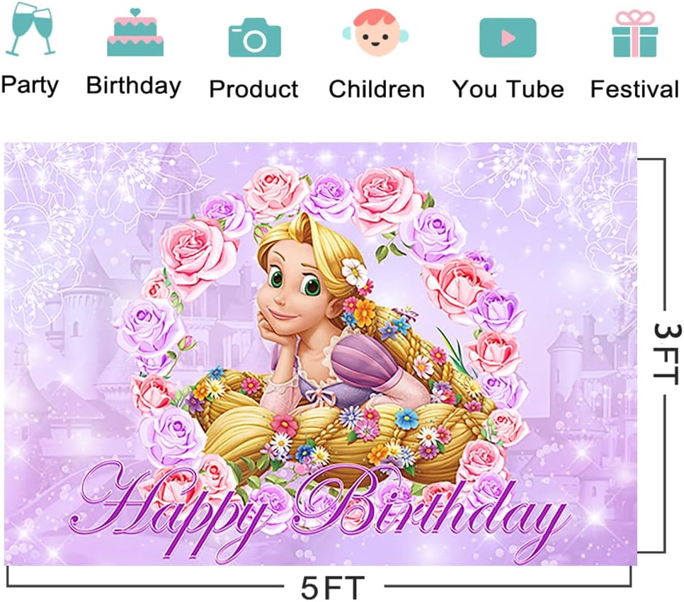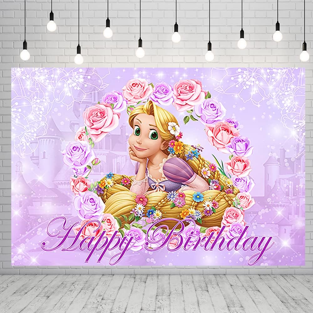 خلفية الأميرة رابونزيل لحفلات أعياد الميلاد لوازم لافتة متشابكة لتزيين الحفلات استحمام الطفل خلفية الصورة 59x38in