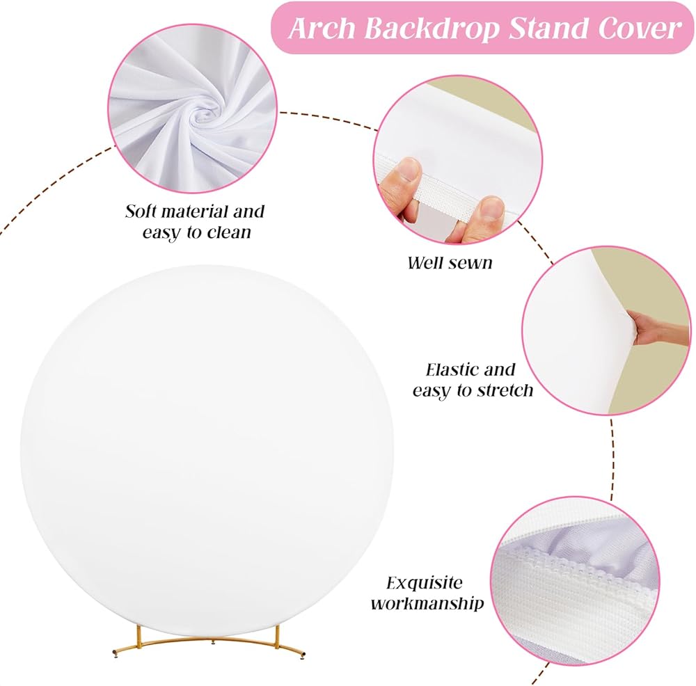 【White Round Backdrop Cover】Round arch cover for wedding. Material: Spandex.Size: 7.2x7.2ft Diameter.The round wedding arch cover is a chic and functional decorations that can bring a touch of class and refinement to wedding or special occasion.