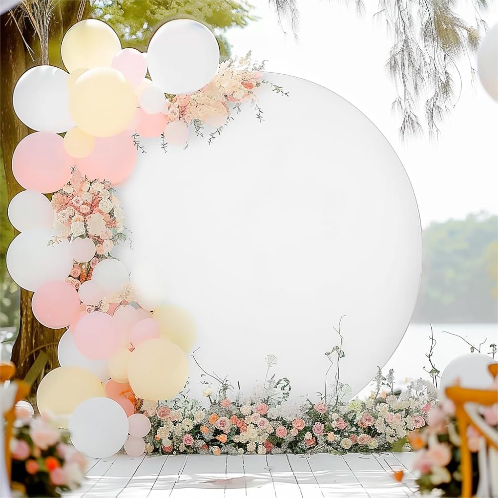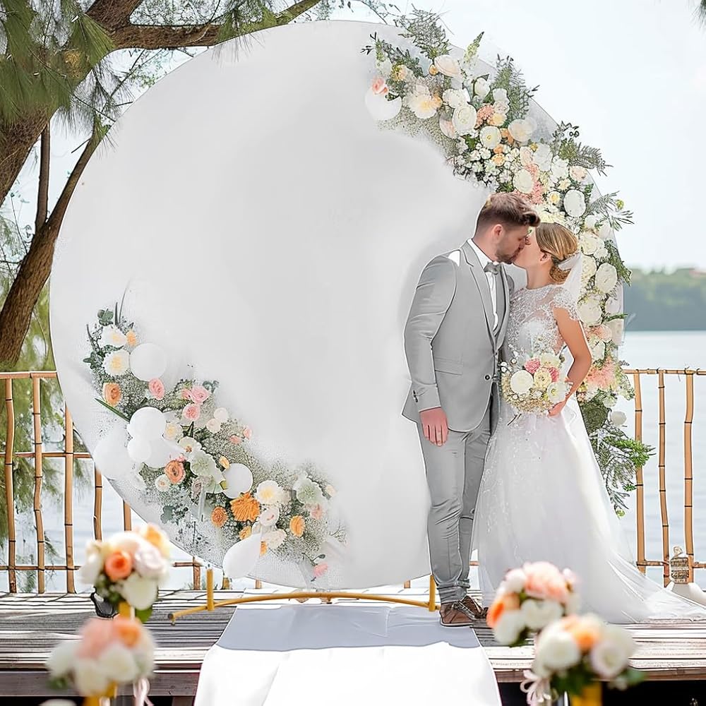 【Round Arch Backdrop Decoration】Our 7.2ft white round backdrop cover is sturdy and practical. it is great for enhancing your party decor, creating photo booth backdrops, adding a charming touch to your reception, or setting the scene for a romantic proposal or engagement party! Consider using the circle arch backdrop cover to create a one-of-a-kind and enjoyable atmosphere for your celebration.