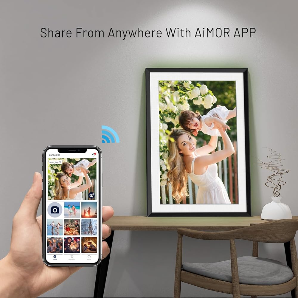 Digital photo frame with exquisite design can enhance your home decor, wherever you are and whatever you do, send photos or small videos (max 15 s) directly to AEEZO WiFi digital frame, other than traditional digital photo frame. Friends and family can enjoy your warm moments within seconds via cloud transfer on the wifi photo frame. It is also a good gift choice for Mother's day, Father's day, Christmas, birthday and wedding.