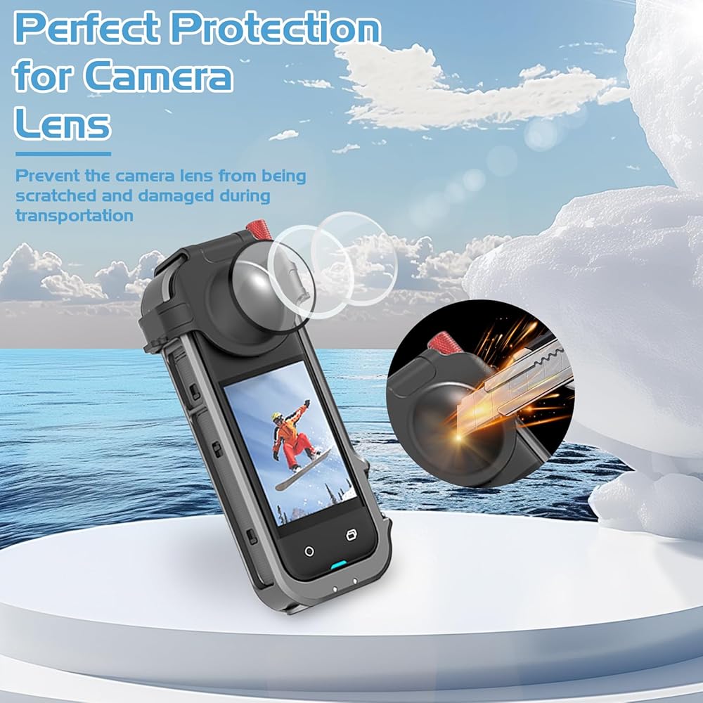 【غطاء العدسة】تم تخصيص الغطاء الواقي للعدسة خصيصًا لـ Insta360 X4 لحماية عدسة الكاميرا من الخدوش والتآكل أثناء النقل والتخزين.