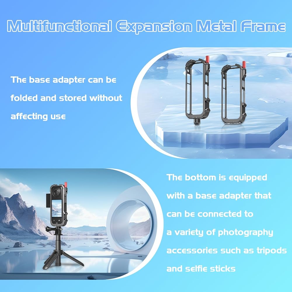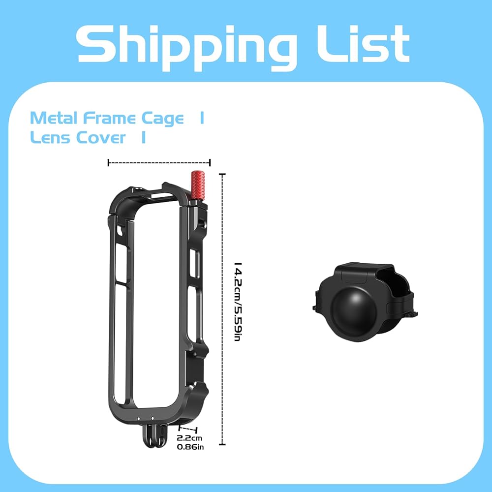 【تصميم حصري】تم تخصيص القفص الإطاري المصنوع من الألومنيوم خصيصًا لجهاز Insta360 X4 ويناسب الجسم تمامًا. قائمة التسليم: إطار معدني من سبائك الألومنيوم × 1؛ غطاء العدسة × 1.