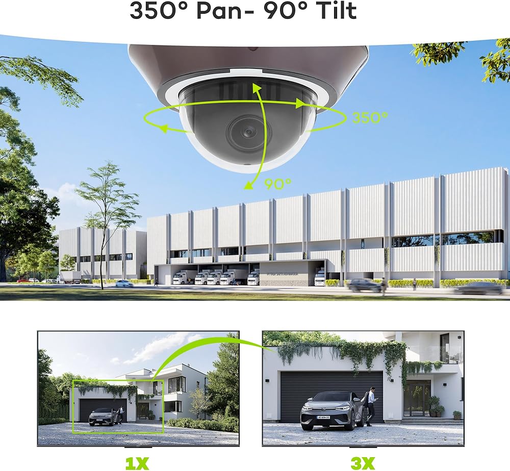 كاميرا أمان ONWOTE 6MP HD PTZ PoE IP، كشف AI للمركبات البشرية، 350 درجة عموم 90 درجة إمالة 3X زووم بصري، عدسة بمحرك 2.8-8 مم، 60 قدمًا - 100 قدم IR، قبة خارجية مع صوت