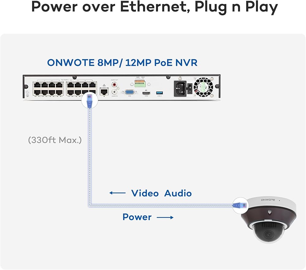 إضافة إلى نظام ONWOTE - يعمل مع مفتاح ONWOTE 12MP/ 8MP PoE NVR أو PoE مع مصدر طاقة 48V-54V.