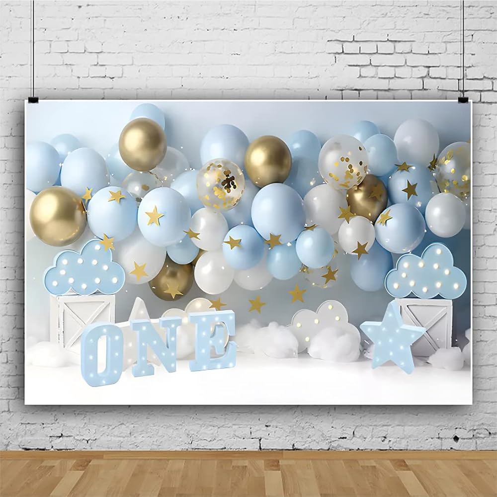 البالونات صور خلفية للصبي حفلة عيد ميلاد 7x5ft النسيج الأولاد كعكة سحق خلفية سنة واحدة خلفية عيد ميلاد الطفل خلفية زرقاء لعيد الميلاد الأول صبي الطفل 1 عيد ميلاد حزب الديكور
