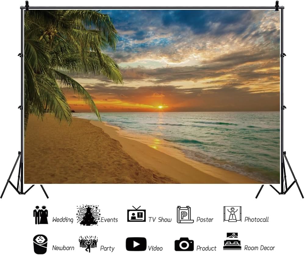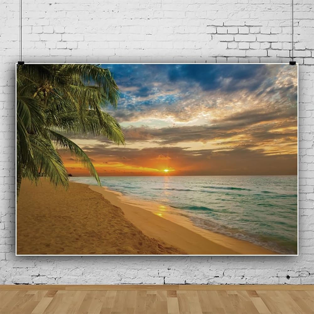 1x vinyl summer tropical beach sunset sunrise Photography Backdrop(Folding);