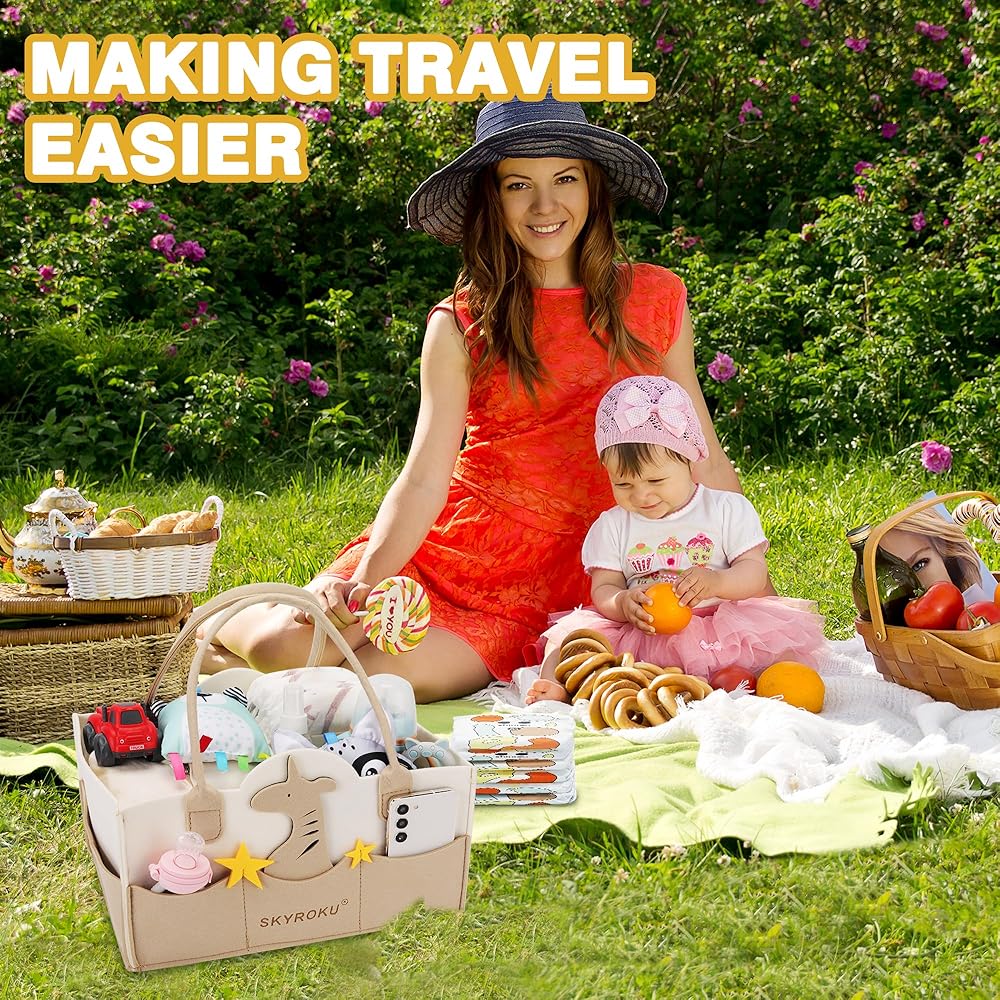 منظم علبة حفاضات الأطفال من SKYROKU، سلة تخزين محمولة للسيارة للأمهات الجدد، هدية لحضانة الأطفال وأساسيات حديثي الولادة