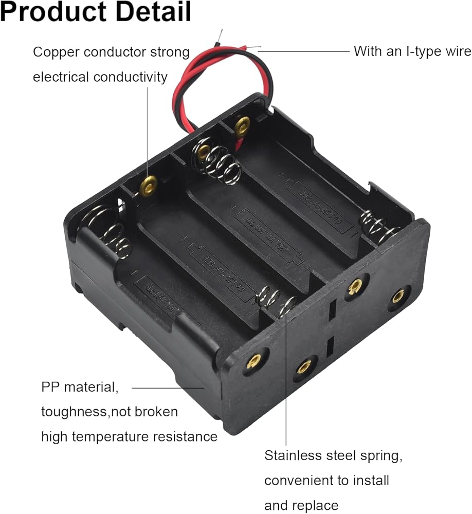8 × حامل بطارية سميك AA، حزمة حامل البطارية، قطعتين حامل بطارية مع أسلاك، موصل مشبك قياسي للبطارية