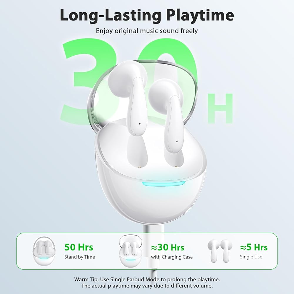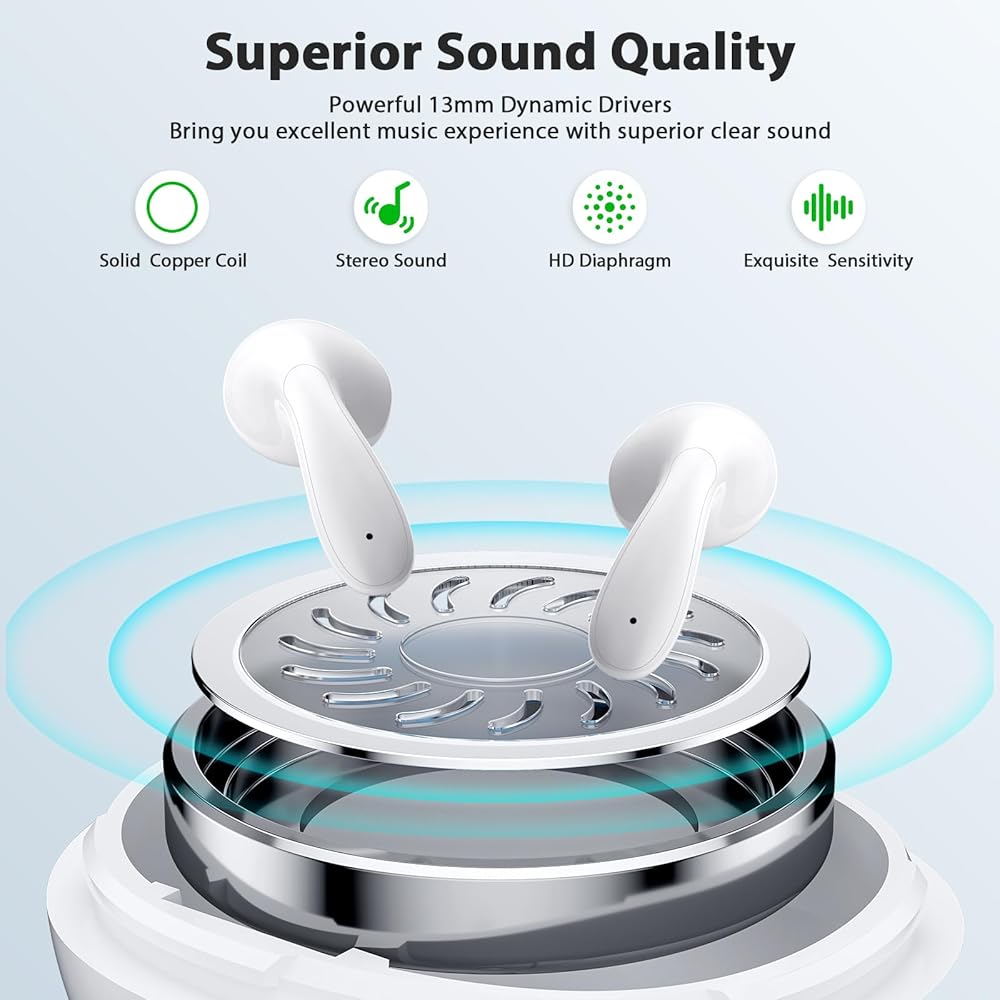 بلوتوث 5.3 والاقتران بخطوة واحدة: تعتمد سماعات الأذن بلوتوث مجموعة شرائح بلوتوث 5.3 المتقدمة مع وحدة فك تشفير عالية الدقة، وتقنية ترميز الصوت AAC/SBC المدمجة، والتي توفر نقل سريع ومستقر، مع زمن وصول منخفض واستهلاك منخفض للطاقة. نطاق بلوتوث 28ft-33ft. لا تقلق أبدًا بشأن الانقطاع أثناء الاستماع والتحكم. الاقتران الأسرع، وضع فردي/ستيريو، الاتصال أو الاستماع يحتاج فقط إلى إخراج سماعتي أذن أو أي سماعة أذن واحدة سيتم فتحها وتوصيلها تلقائيًا.