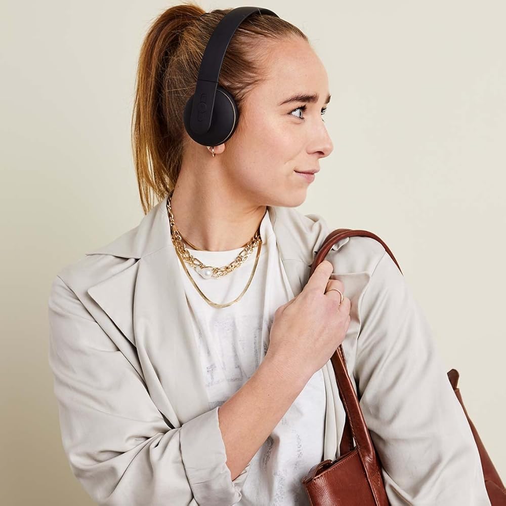 سماعة رأس بلوتوث لاسلكية على الأذن، أسود، إلغاء الضوضاء، وقت تشغيل طويل 20 ساعة، شحن سريع
