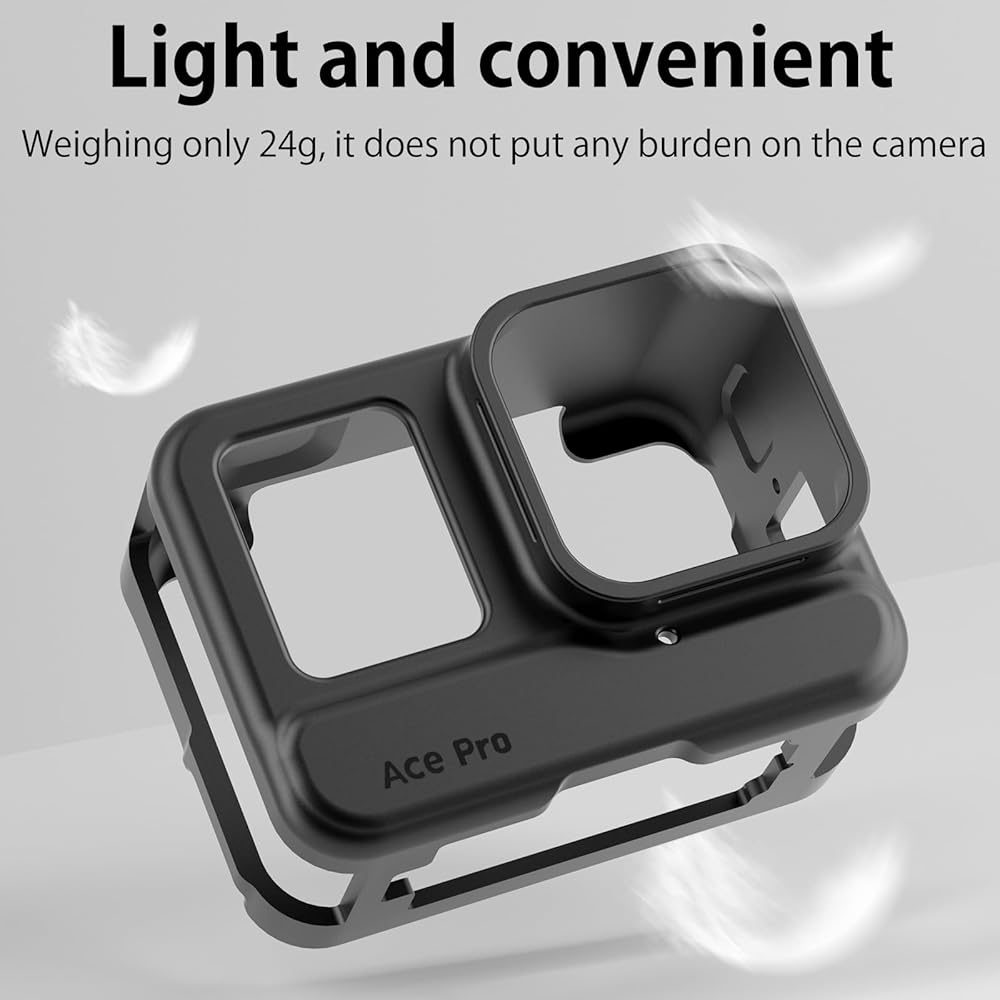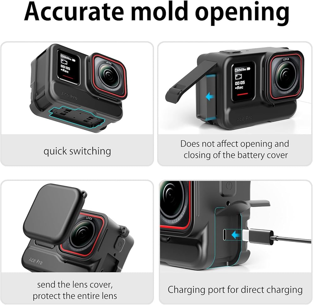 • 【 الطراز المقابل 】 مصمم لكاميرا الحركة 360Ace Pro، فهو مصبوب بدقة ومرن، ولا يتلف بسهولة. وفي الوقت نفسه، لديها تبديد حرارة ممتاز وحماية.