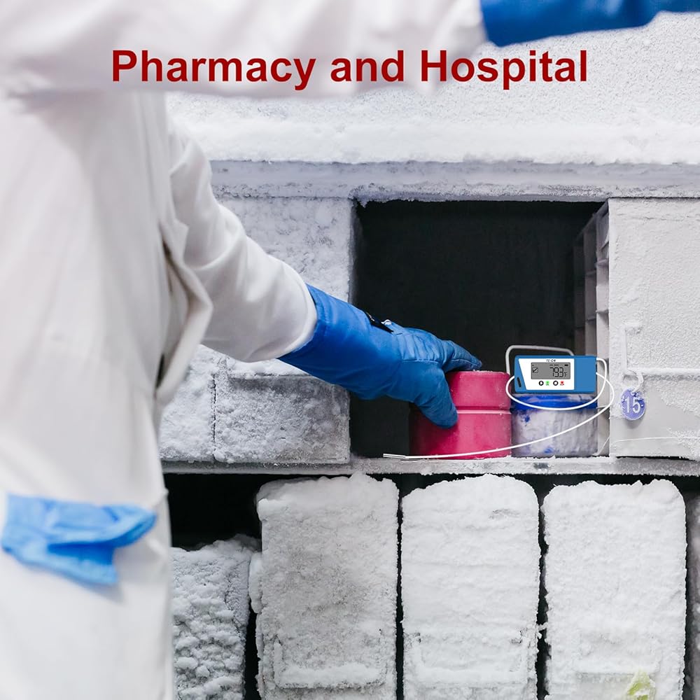 【مسبار خارجي عالي الدقة】يوفر مسجل درجة الحرارة الخاص بنا المزود بمسبار خارجي (1.5 متر) دقة عالية. التصميم المسطح للسلك يجعله أكثر ملاءمة للوصول إلى الثلاجات والمجمدات وخزائن الأدوية.